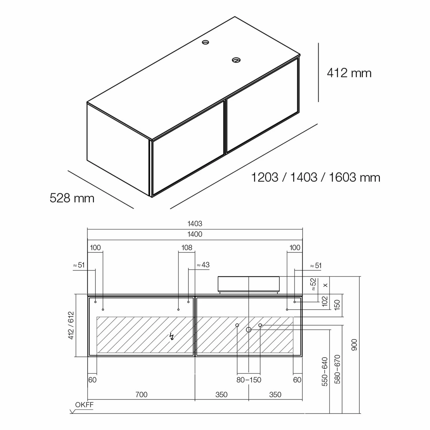 Alape Arkta Möbelmodul mit Trägerplatte 140 cm, Beckenposition rechts