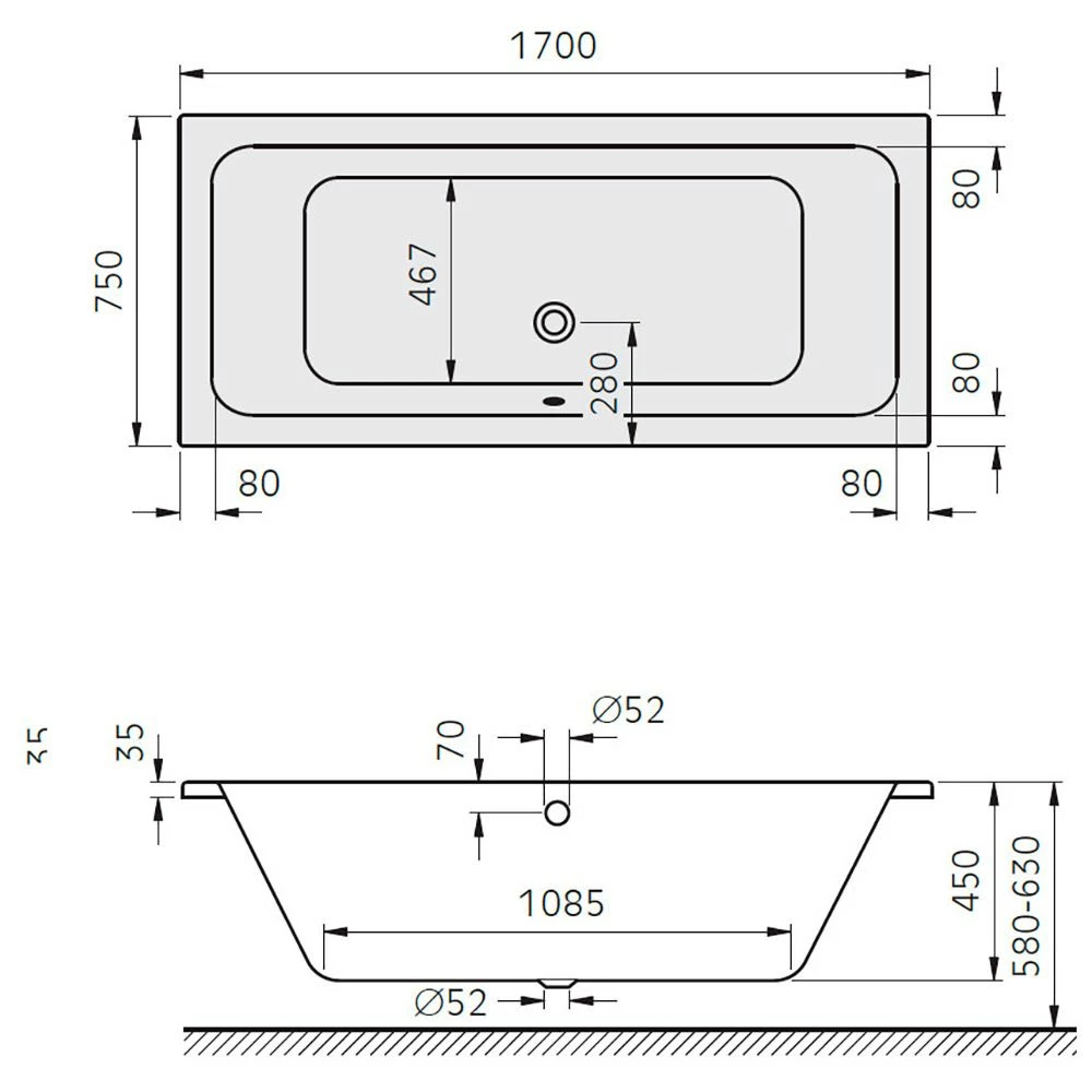 Architekt Plana Duo Badewanne 170 x 75 cm