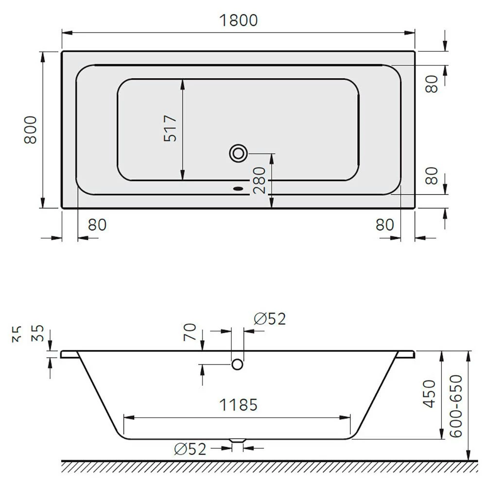 Architekt Plana Duo Badewanne 180 x 80 cm