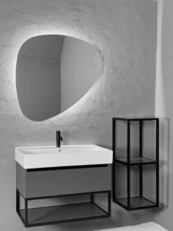 Oval – die neue Formensprache im Spiegelbereich. Diese Badspiegel stellen die optimale Ergänzung zu jedem Art Waschplatz dar. Die LED-Beleuchtung ist effizient und sparsam. Der umlaufende schwarze Rahmen dient als visuell ansprechender Akzent.