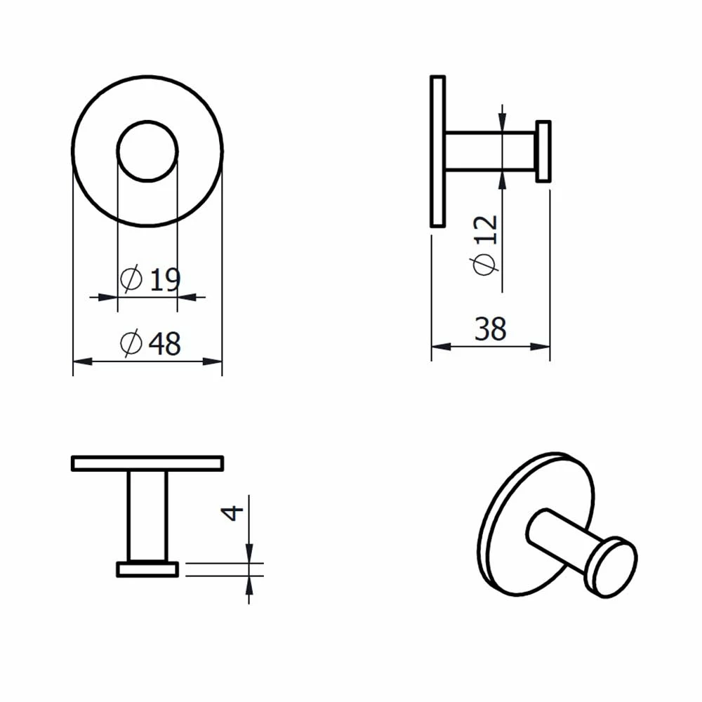 | Abmessungen | T: 3,8 Haken Ø: 1,9 Rosette Ø: 4,8 cm |