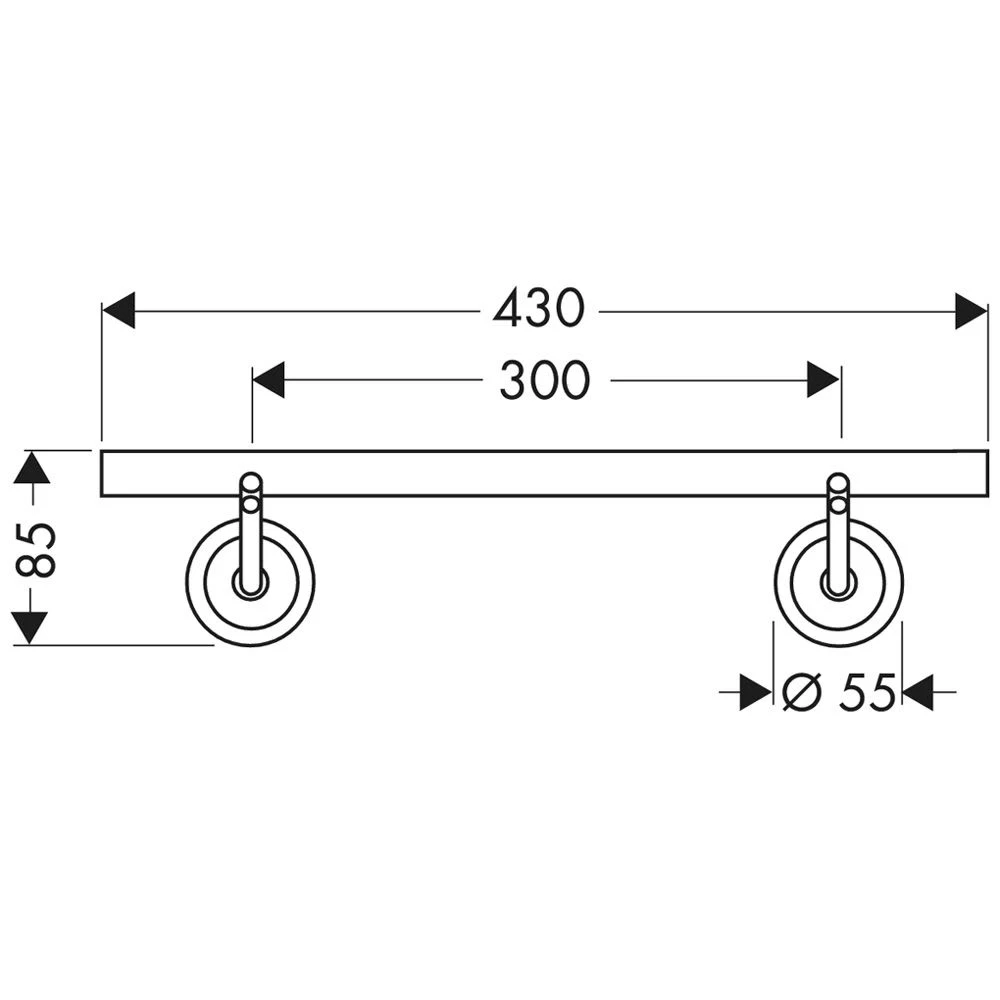 | Abmessungen | L: 43 Bohrabstand: 30 Rosetten Ø: 5,5 cm |