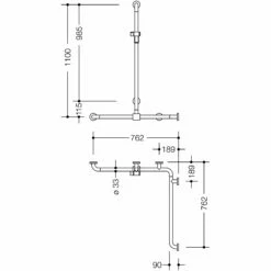 HEWI Serie 805 Classic Duschhandlauf Mit Verschiebbarer Brausehalterstange 110 X 76,2/76,2 Cm