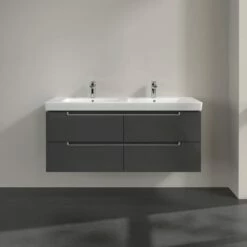 Villeroy & Boch Subway 2.0 Waschtischunterschrank XL 128,7 Cm, Griffe Silberfarbig Matt, 4 Auszüge