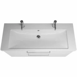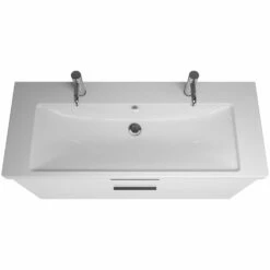 Burgbad Eqio Möbelkombination Inkl. Keramik-Waschtisch 103 Cm, 2 Hahnlöcher, Mit Griff G0200