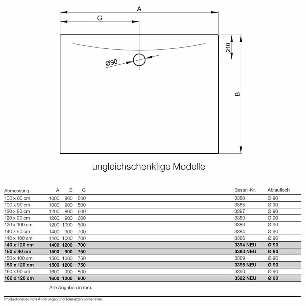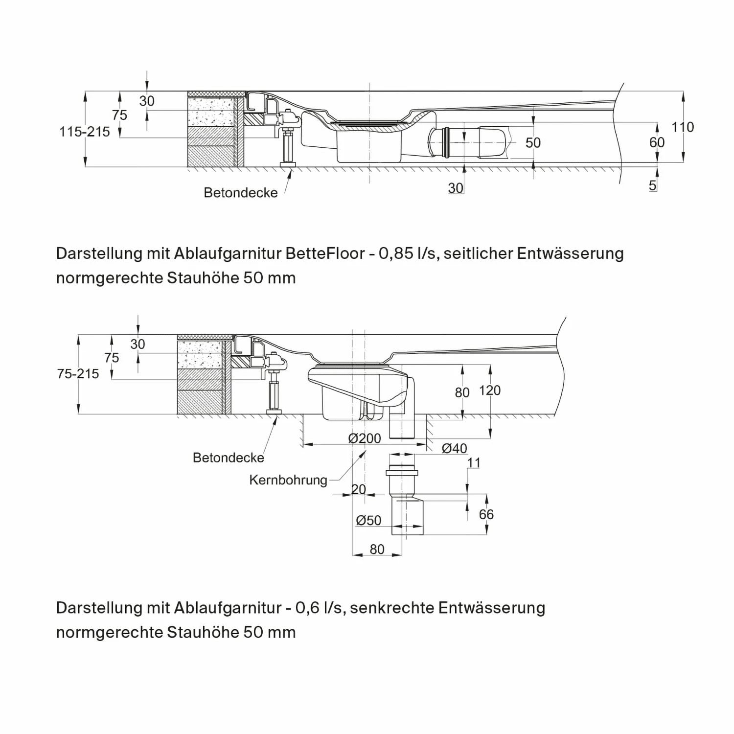 Bette BETTEFLOOR SIDE Duschfläche 140 x 90 cm mit Antirutsch Sense