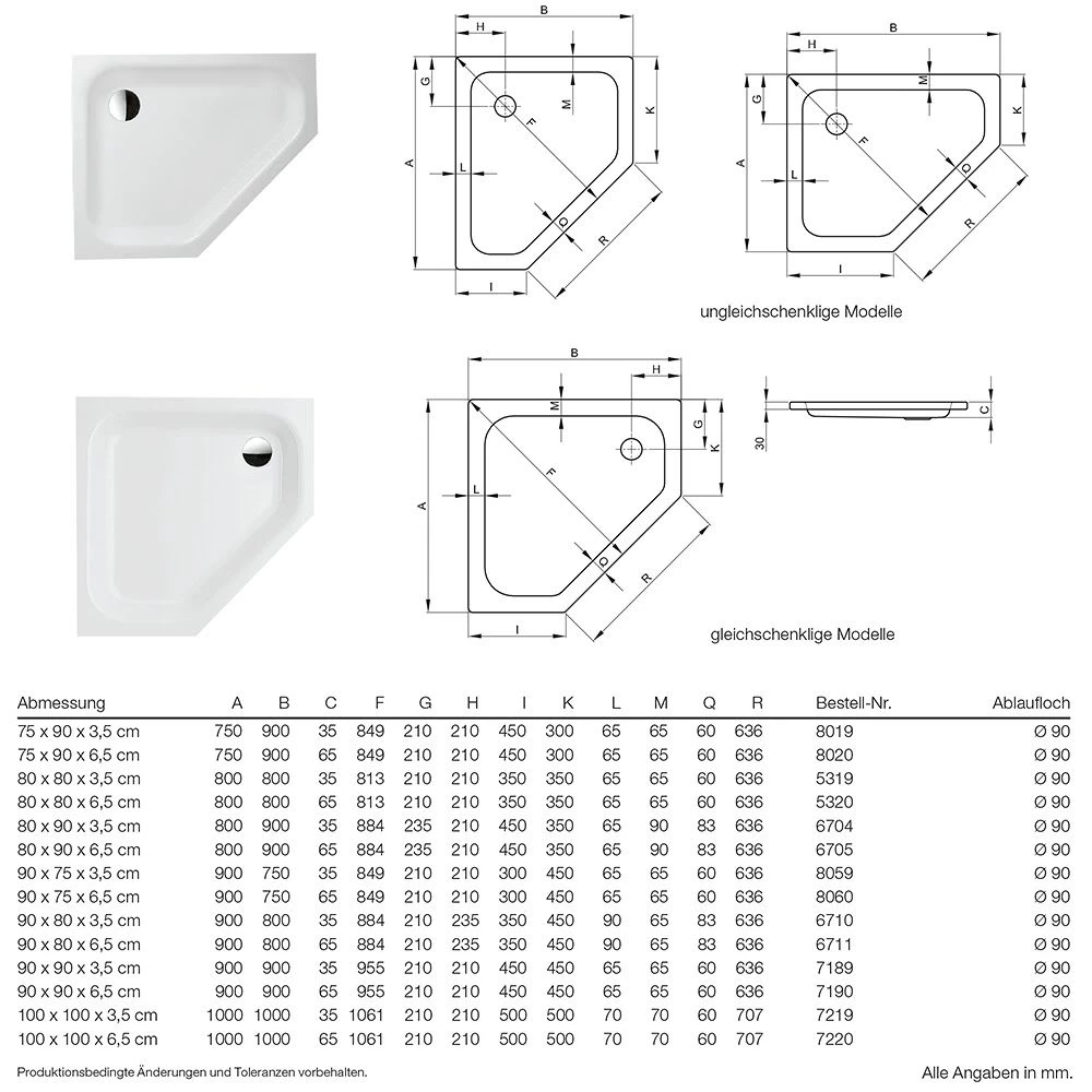 Bette Caro 5-Eck Duschwanne ohne Schürze 90 x 90 x 3,5 cm