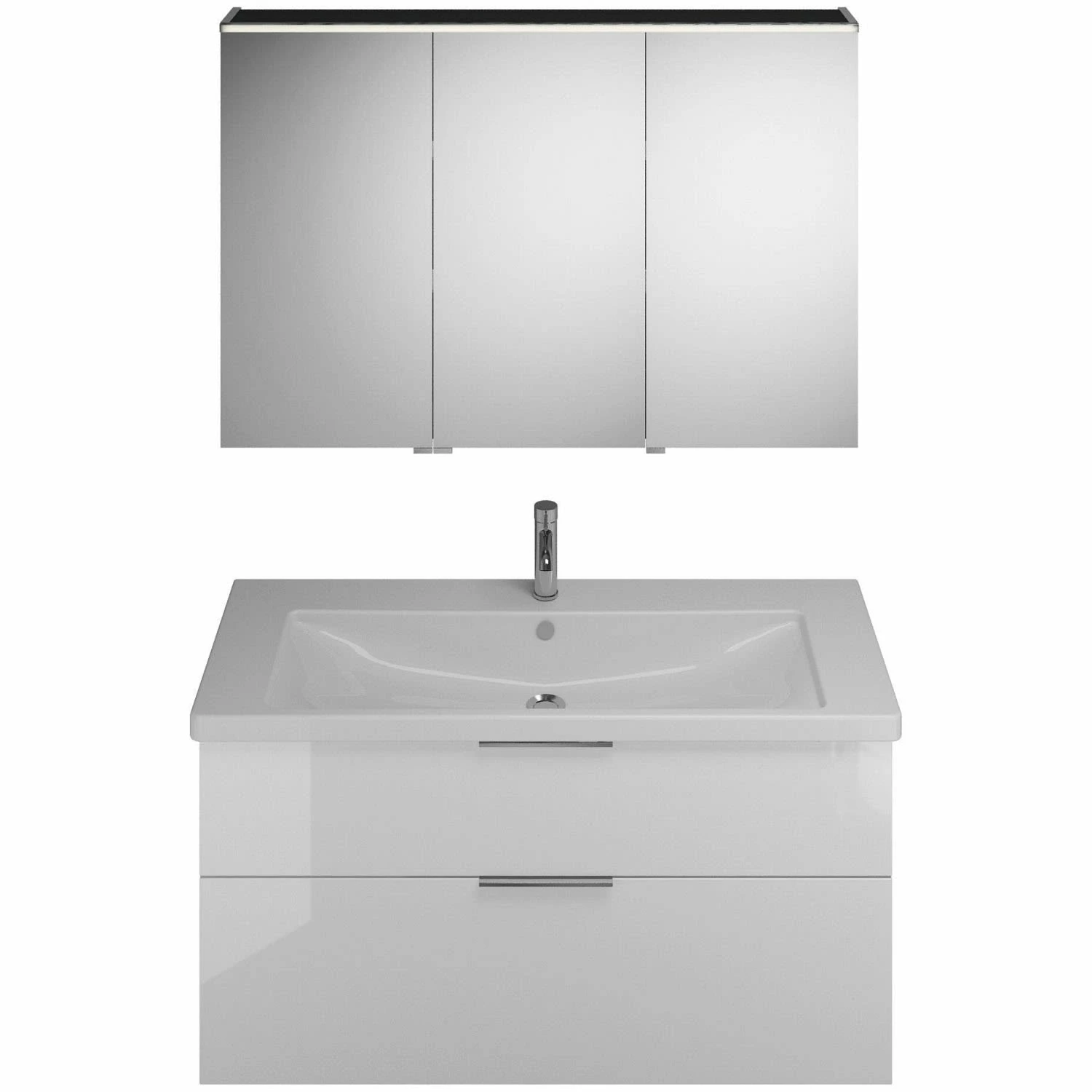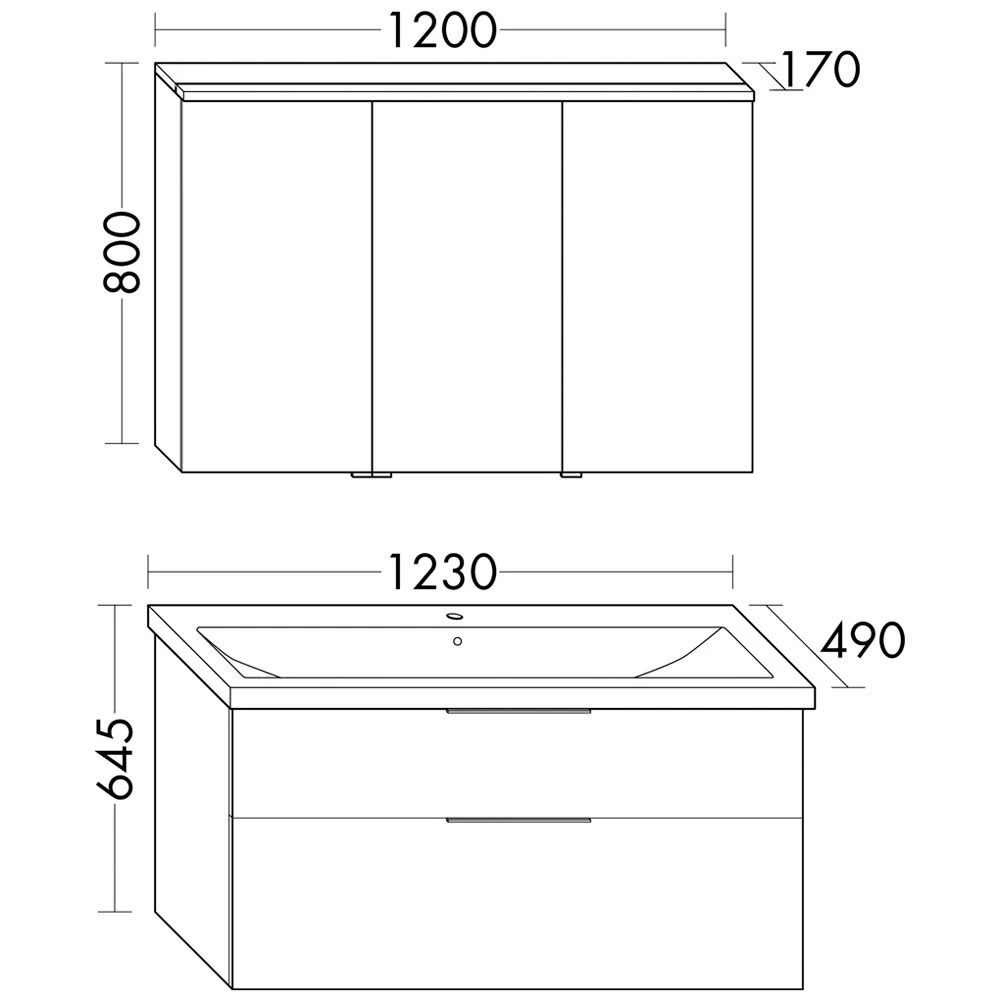 burgbad Eqio Möbelkombination inkl. Keramik-Waschtisch 123 cm, Doppeltür Spiegelschrank links, mit Griff G0146