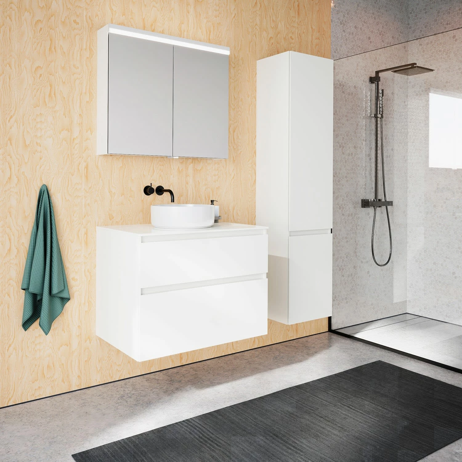 burgbad Lin20 Spiegelschrank mit LED-Beleuchtung, 80 cm, 2 Spiegeltüren