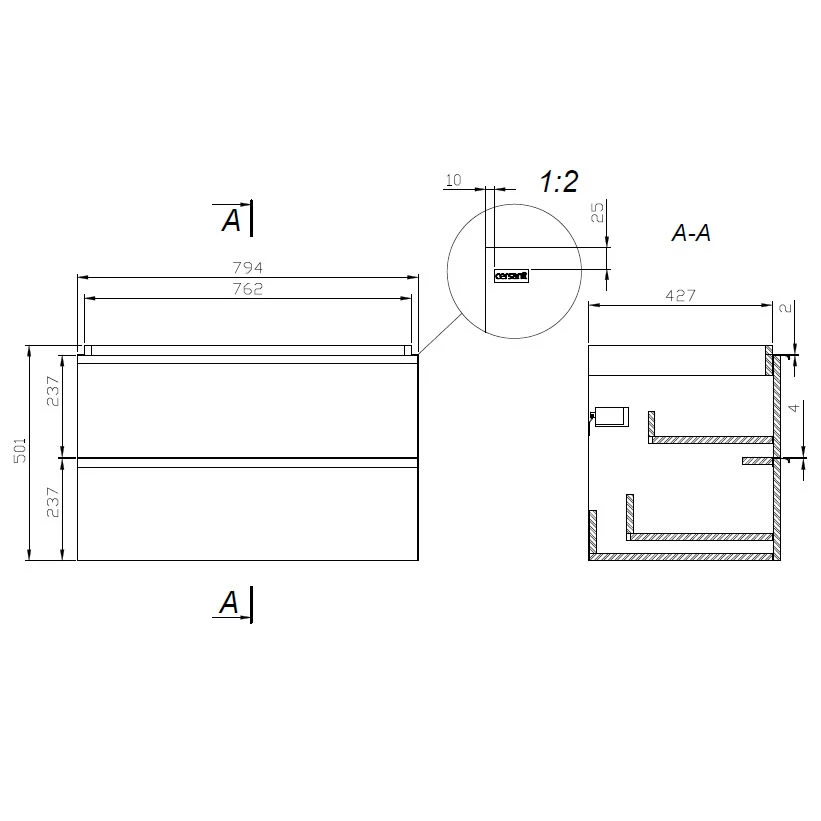 Cersanit Virgo Waschtischunterschrank 80 cm, mit chrom Griffen