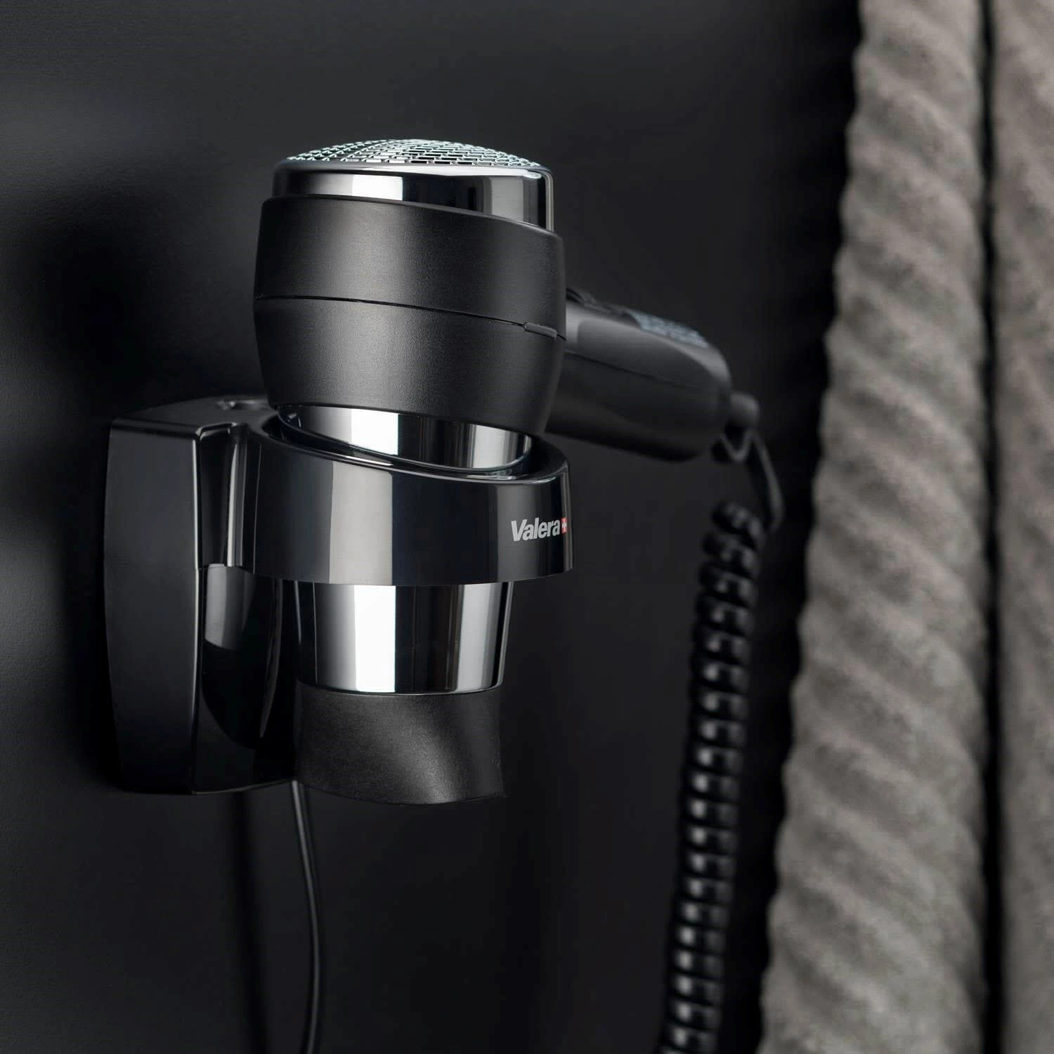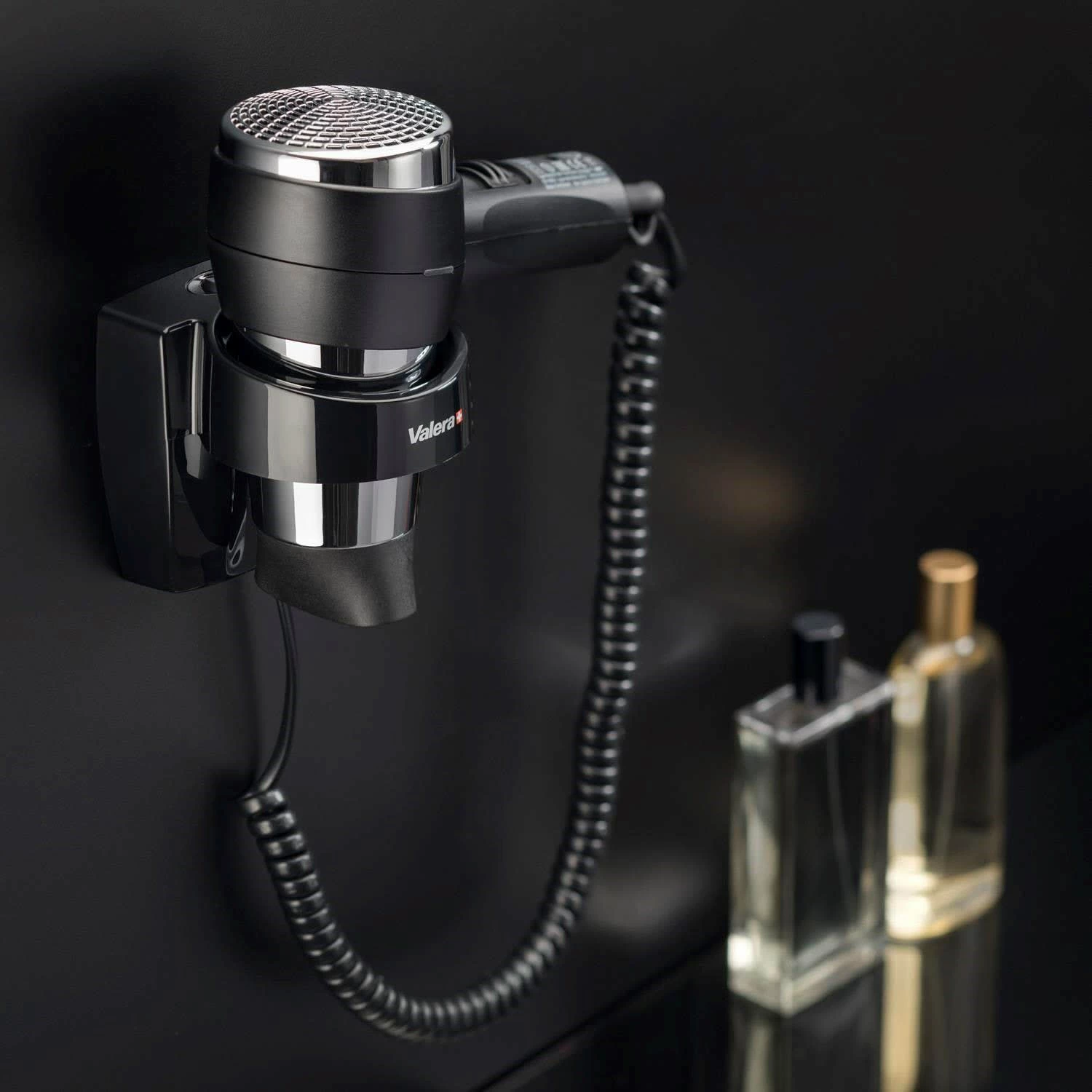 Der Trockner besteht aus Kunststoff in schwarzer Ausführung in Kombination mit Chrom. Produkt mit 10 Jahren Garantie.