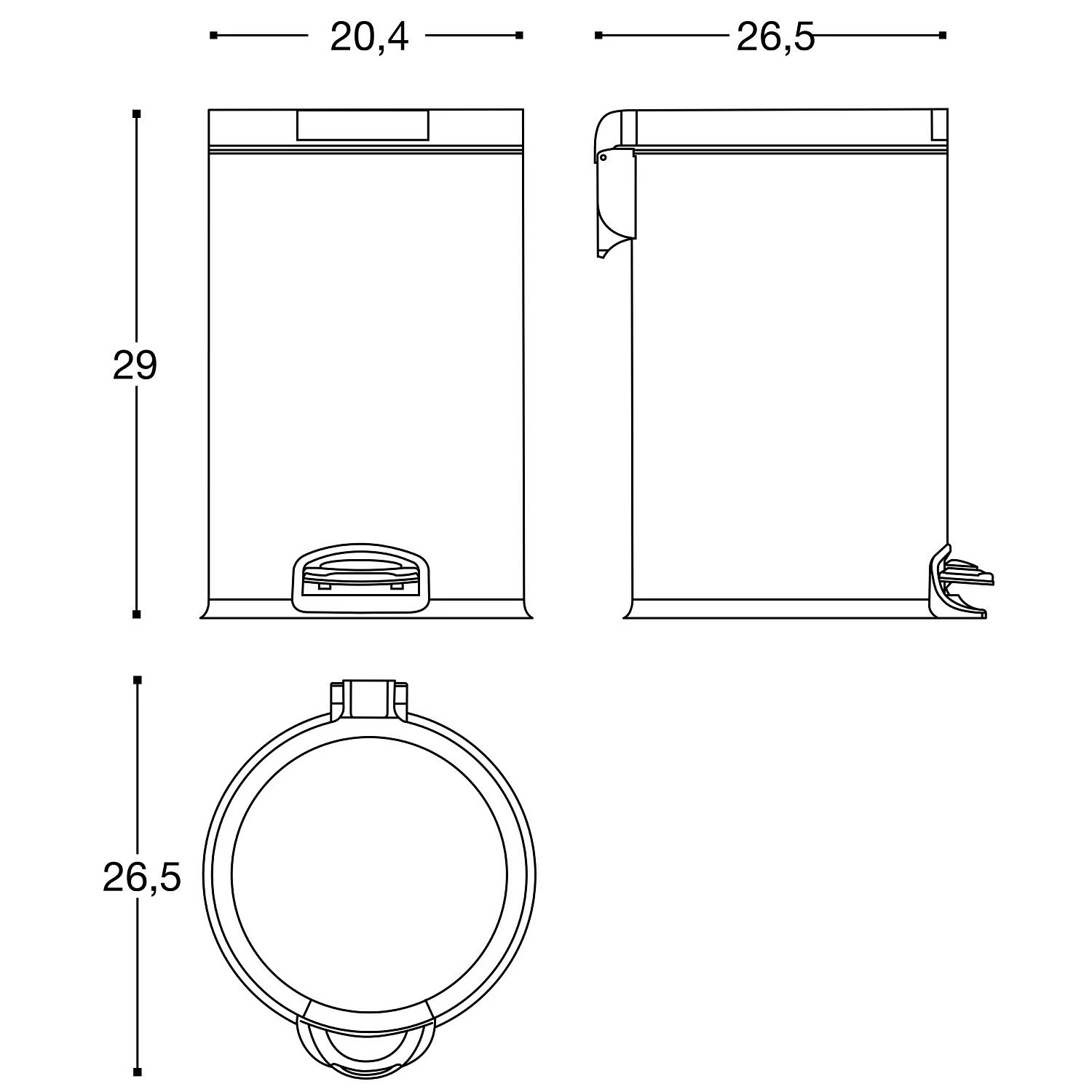 - Stahlpedal mit hydraulischer Technologie für das Öffnen und Schließen und einer extrem leisen Abbremsung
