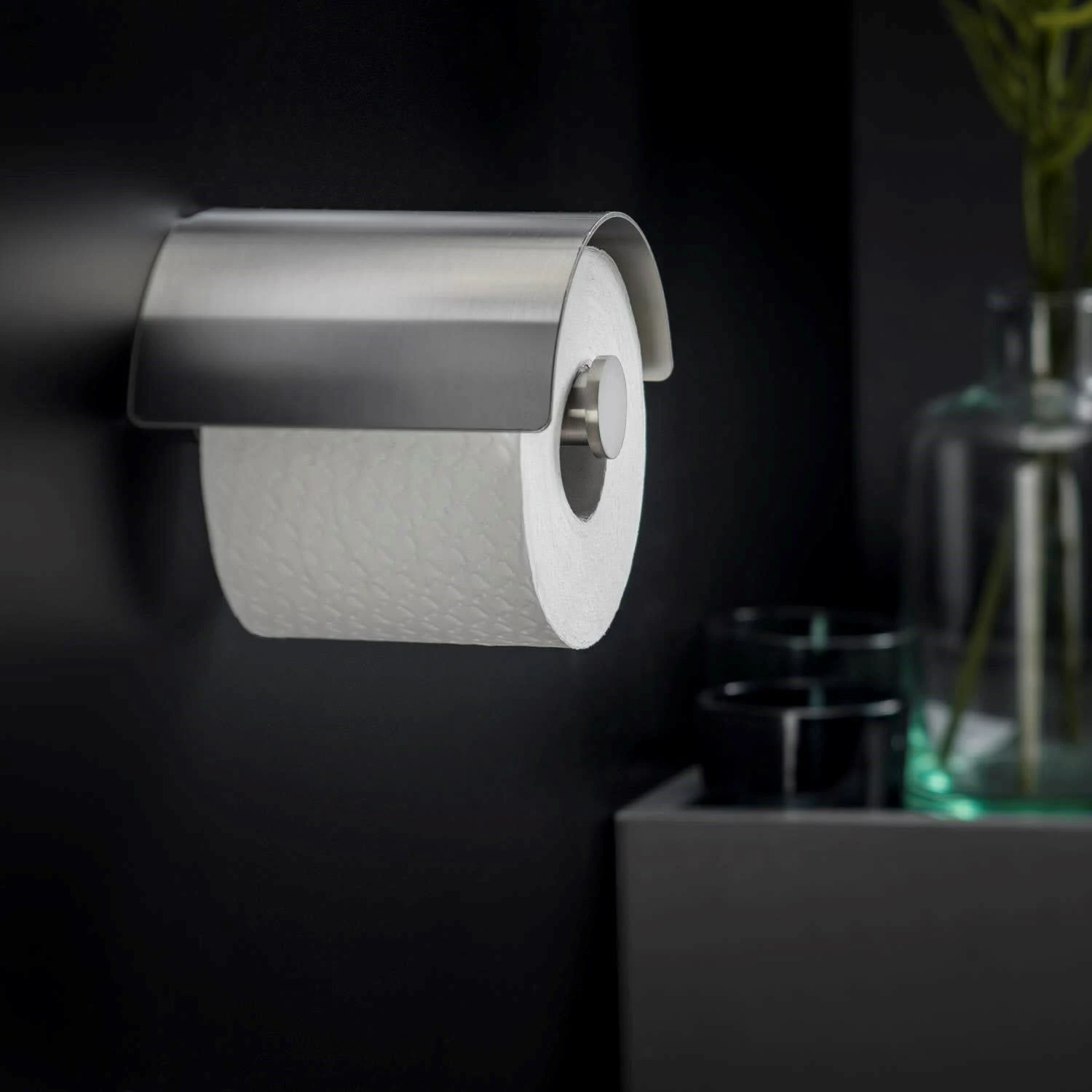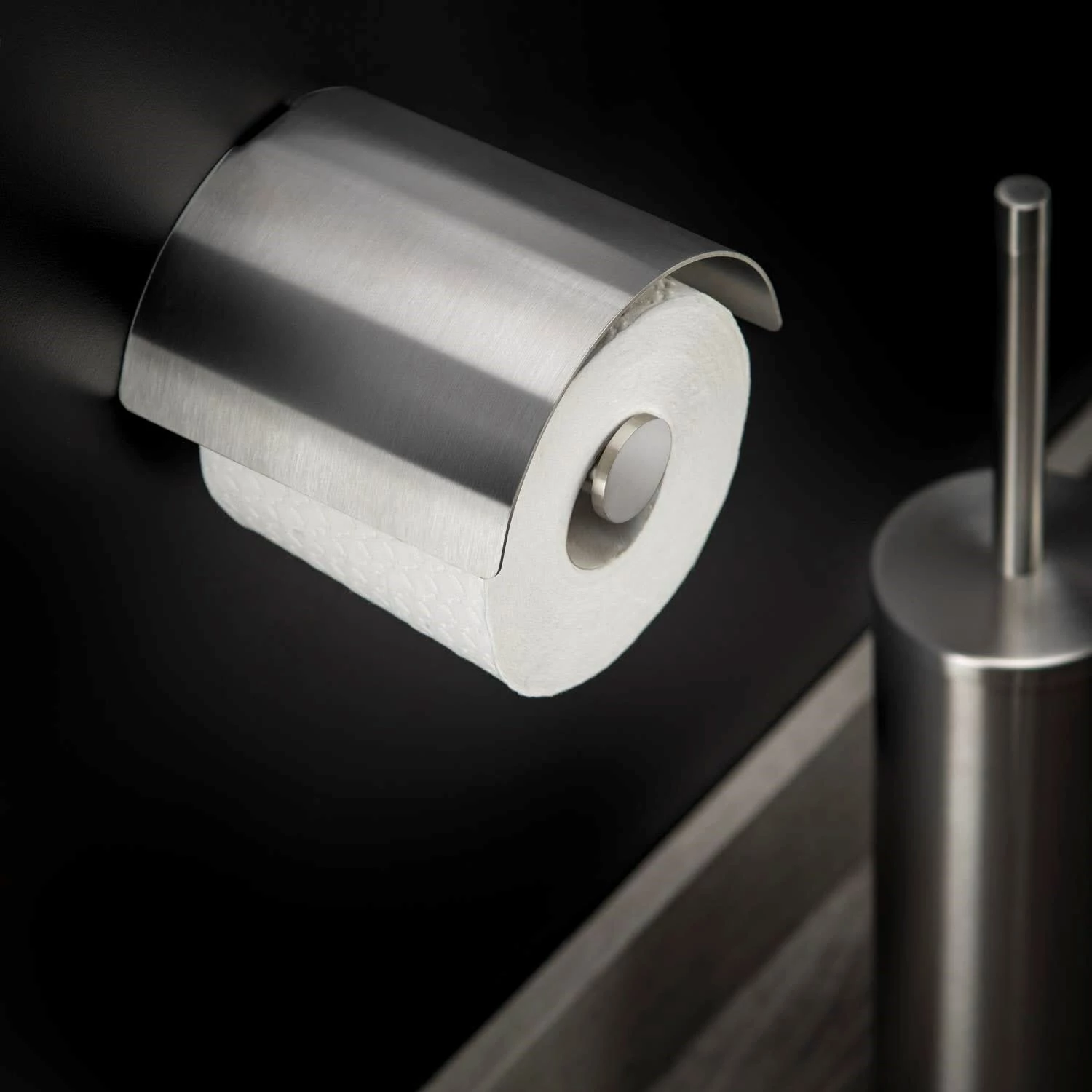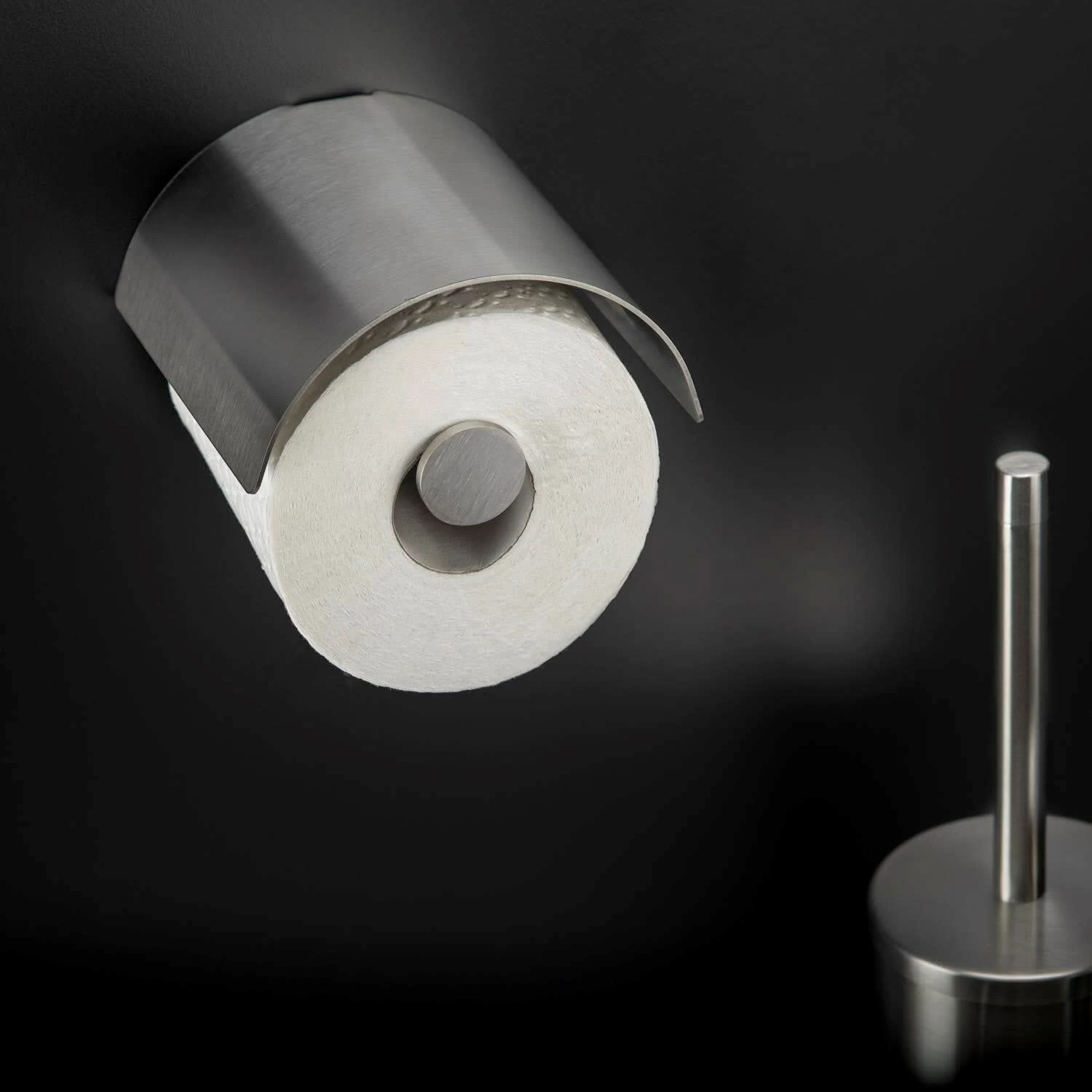 Der Papierhalter für das Badezimmer besteht aus Edelstahl in einer matten Oberfläche. Produkt mit 10 Jahren Garantie. Verwenden Sie zur Reinigung Seifenwasser, spülen Sie es mit viel Wasser ab und trocknen Sie es schließlich mit einem weichen Tuch oder Fensterleder ab. Verwenden Sie niemals starke Produkte, die Säuren, Bleichmittel oder Schleifmittel enthalten.