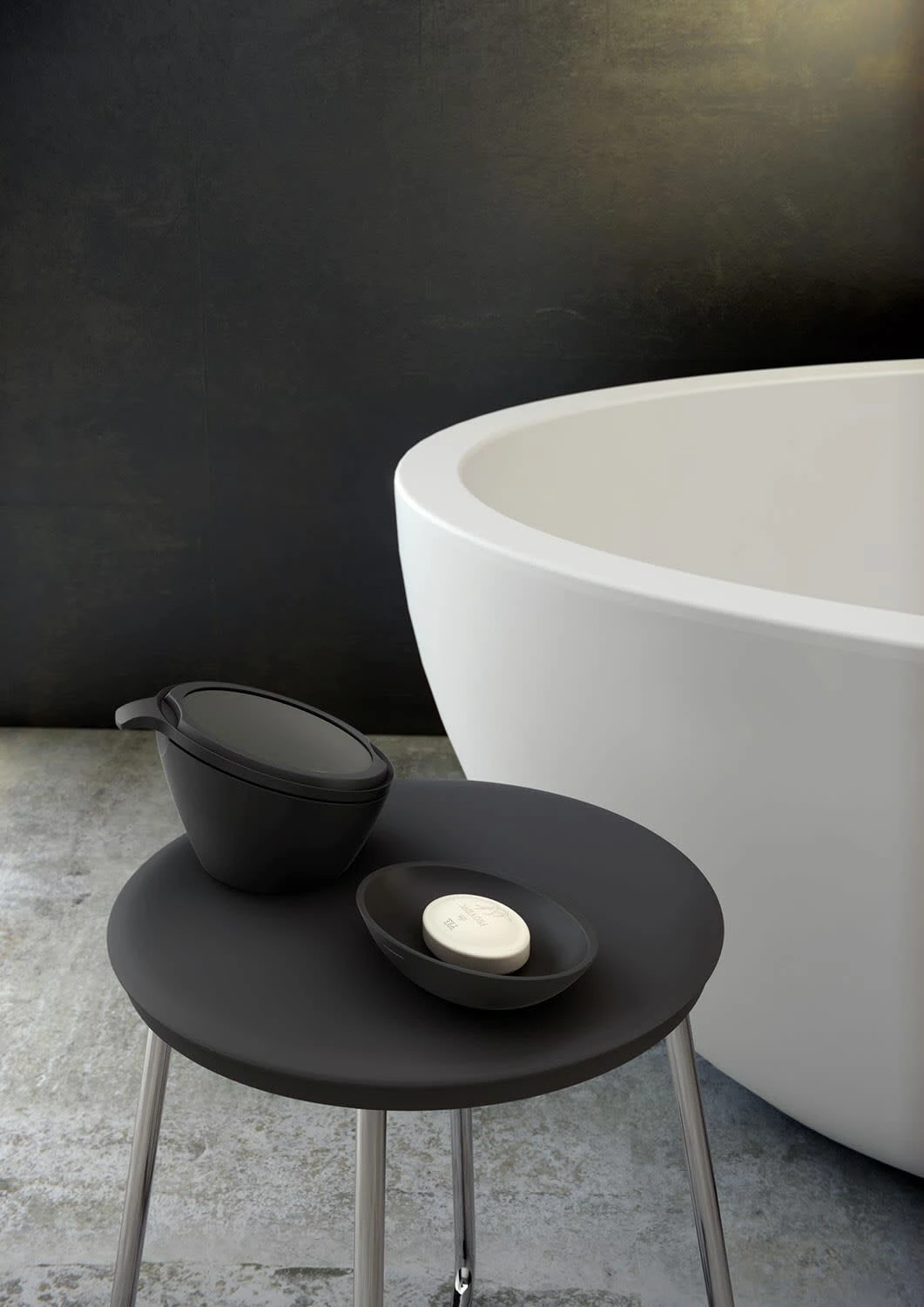 Die Stand-Seifenschale aus PMMA (Poly Methyl Methacrylate) ist in einem weichen schwarzen Finish. Produkt mit 10 Jahren Garantie.