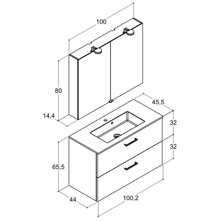 Dansani Play Möbelset inkl. Spiegelschrank „CH“ und Waschtischunterschrank mit 2 Schubladen, 100,2 cm