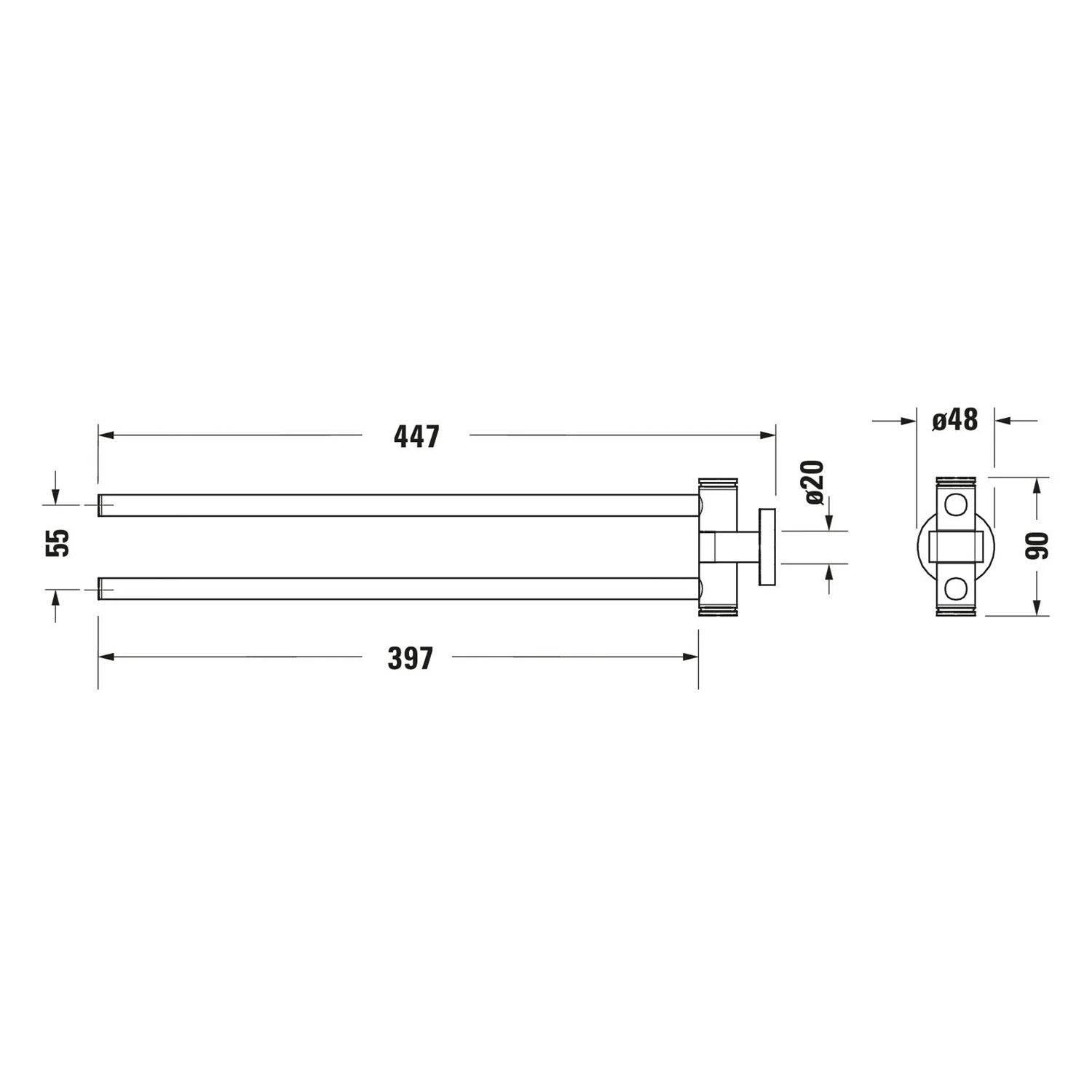 - zweiarmig: bietet Platz für bis zu 2 Handtücher