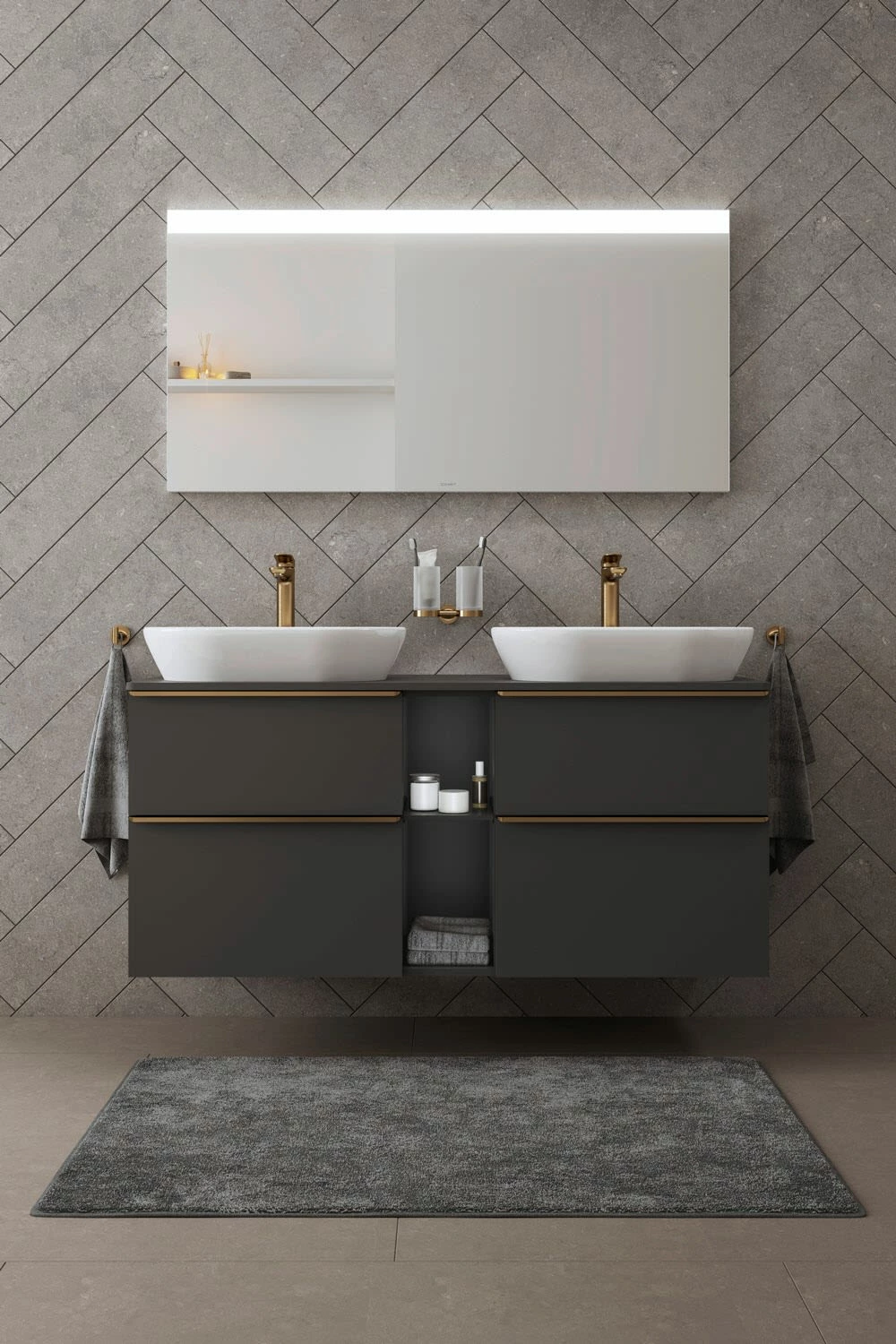 Duravit D-Neo Konsolenwaschtischunterbau für 2 Waschtische 140 x 66,4 cm, 4 Auszüge, Griff bronze gebürstet