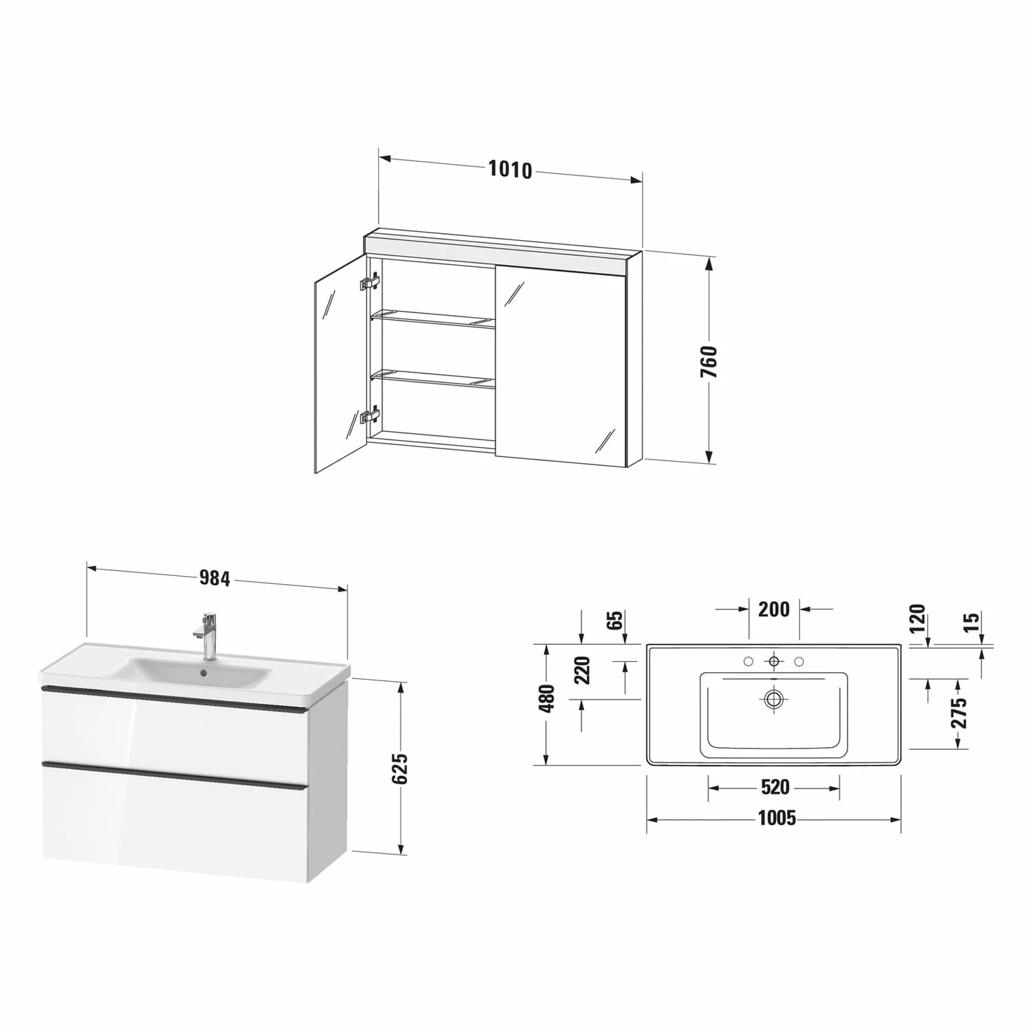 Duravit D-Neo Möbelset mit Spiegelschrank 100,5 cm