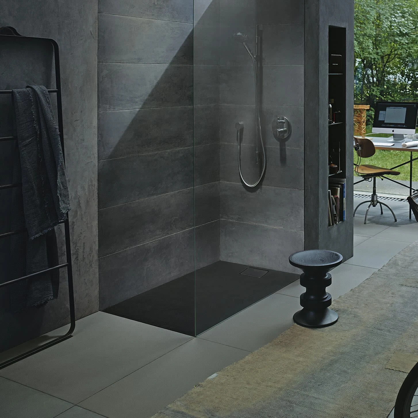Durchgehend aus DuraSolid gefertigt, bilden Duschfläche und Ablaufabdeckung eine optische Einheit. So entsteht ein Boden, der nicht nur so aussieht, sondern auch so hart ist wie Stein.