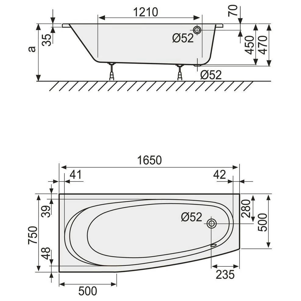 DUSCHOLUX Piccolo 167 Kleinraum Badewanne Einbau Ecke links