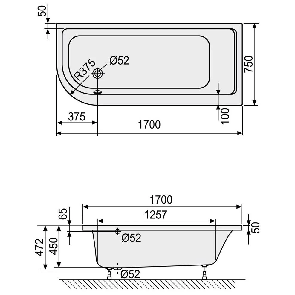 DUSCHOLUX Prime-Line 265 Badewanne soft-corner 1 Einbau Ecke rechts