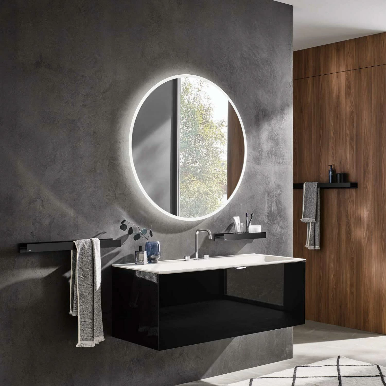 Emco aura Handtuchhalter mit 2 Handtuchschlitzen rechts, mit Ablage, 120 cm