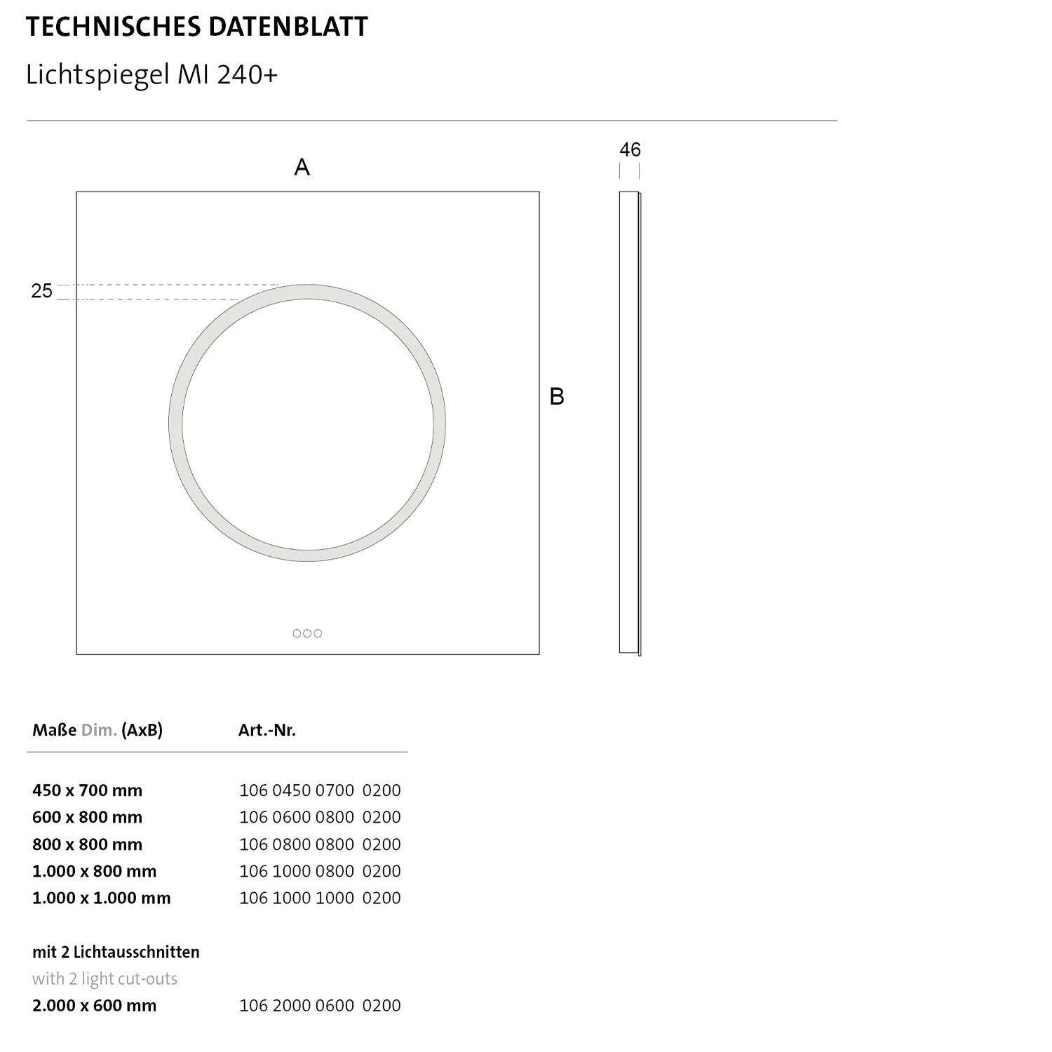 Emco MI 240+ LED-Lichtspiegel 60 cm mit einem oder zwei runden Lichtausschnitten und Touch-Bedienfeld