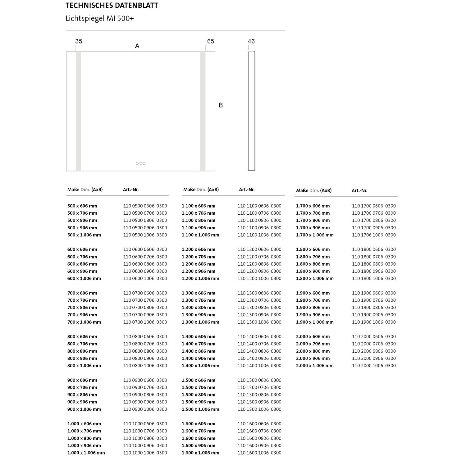 - Lichtsteuerung über drei Touchsensoren in der Spiegelfläche mit den Funktionen: Ein und Ausschalten