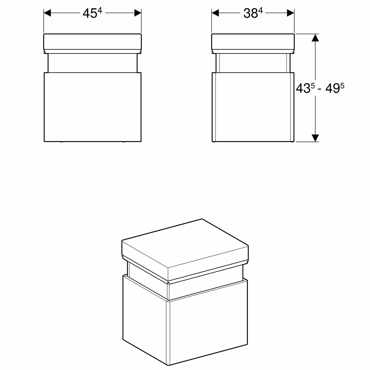 | Abmessungen | B: 45 T: 38,4 H: 43,5/49,5 cm |