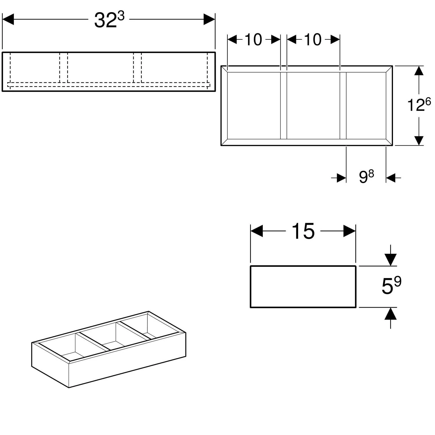 Geberit Schubladeneinsatz, H-Unterteilung 32,3 x 15 x 5,9 cm