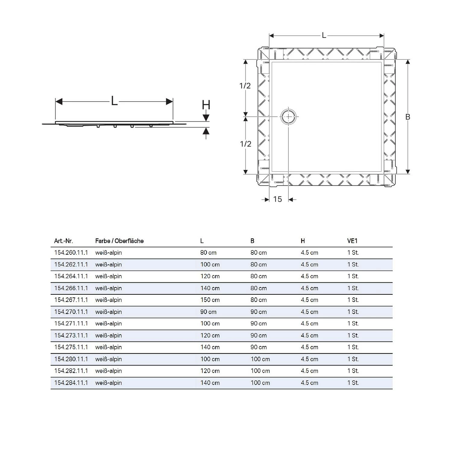 Geberit Setaplano Duschfläche 120 x 90 cm