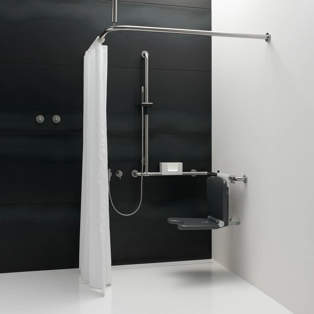 HEWI Serie 805 Classic Duschhandlauf mit verschiebbarer Brausehalterstange 110 x 76,2/76,2 cm