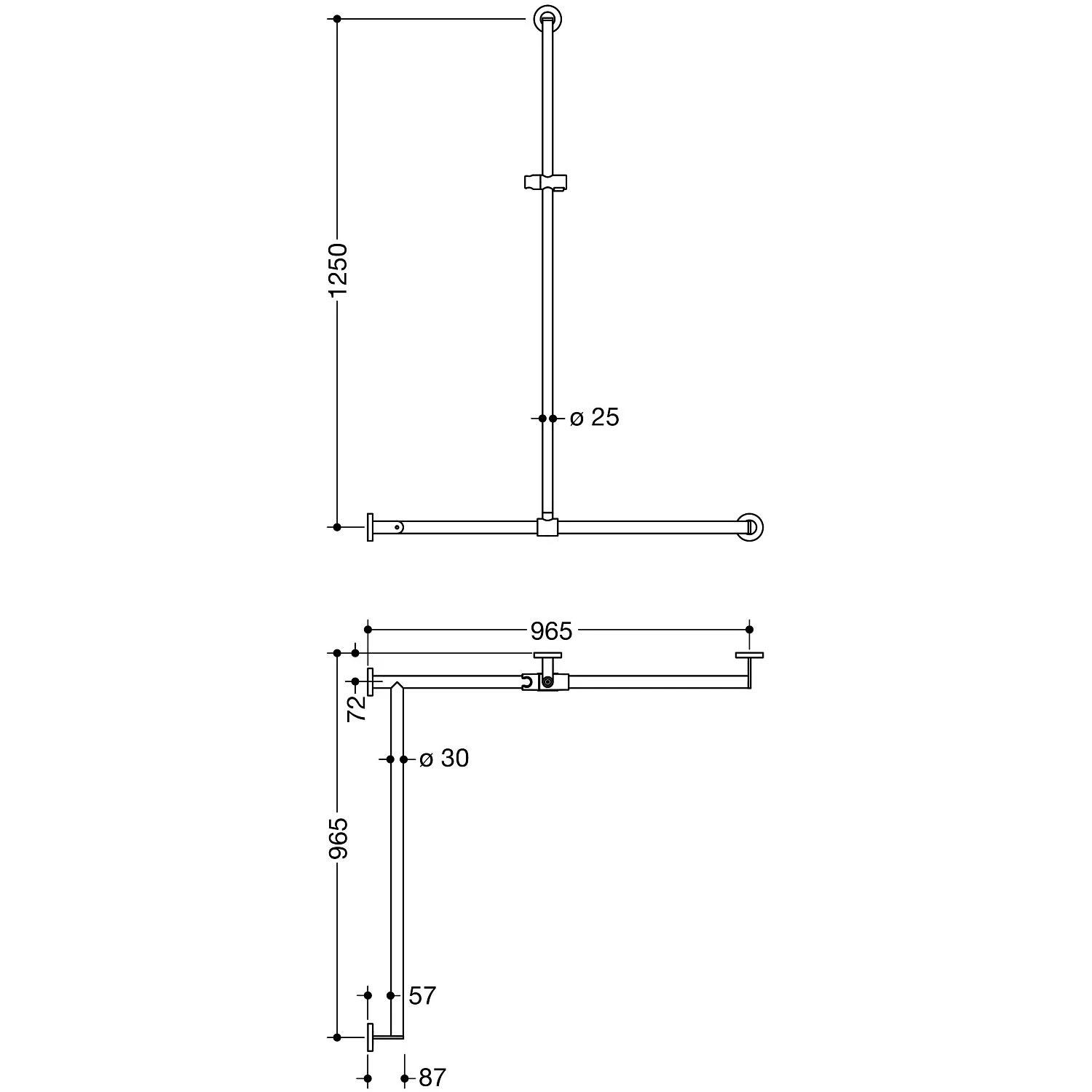 HEWI System 900 Duschhandlauf, 125 x 96,5 x 8,7 cm, Ausführung rechts