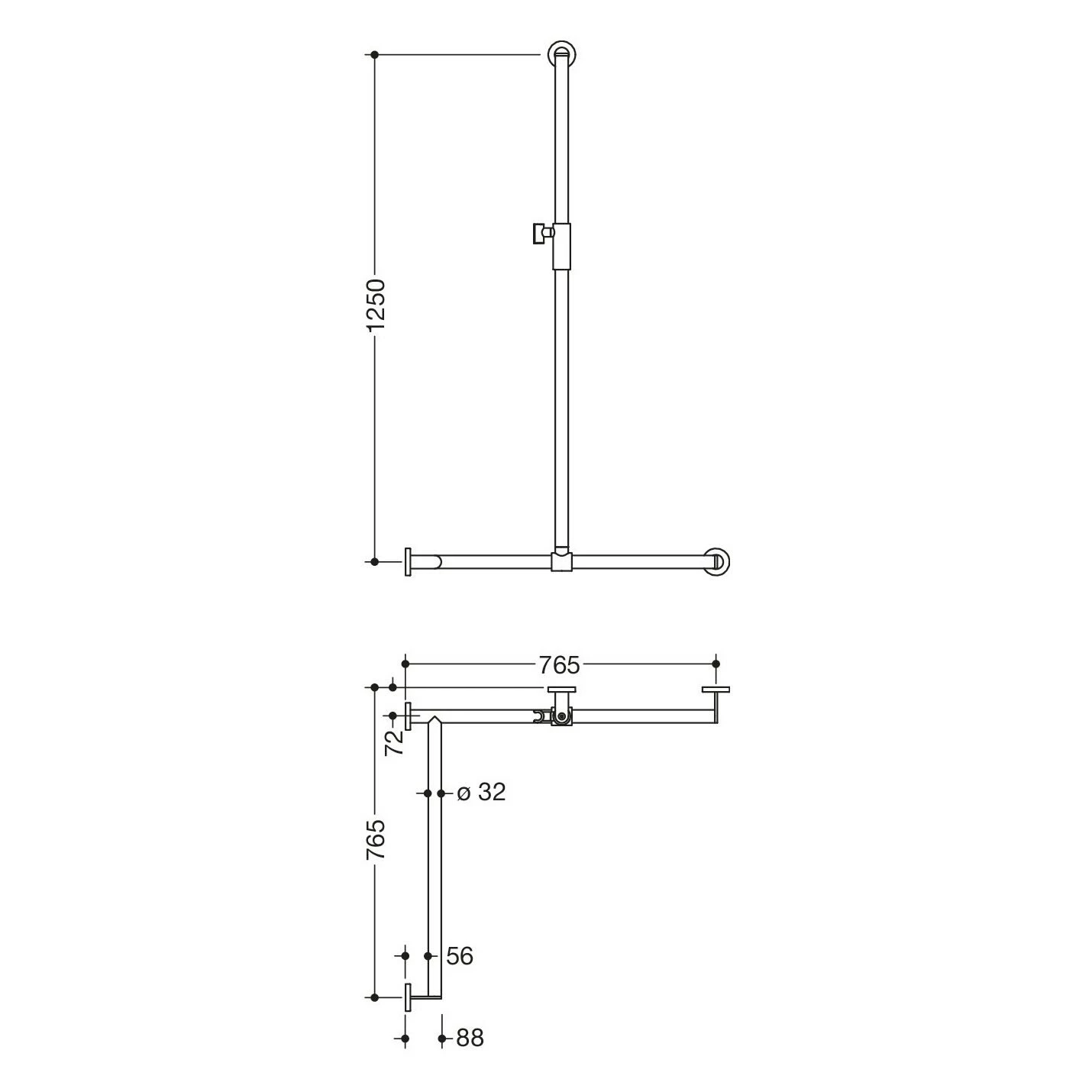 HEWI System 900 Duschhandlauf mit verschiebbarer Brausehalterstange 76,5 cm, links