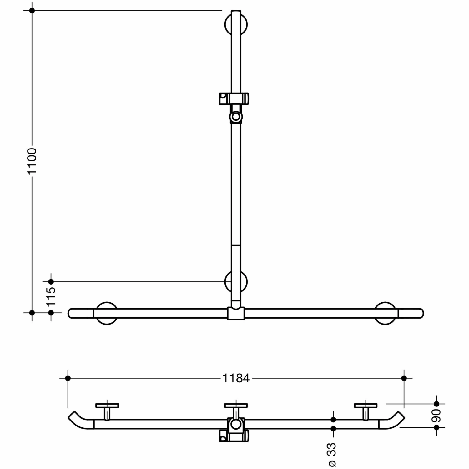 HEWI Warm Touch Duschhandlauf mit verschiebbarer Brausehalterstange, 110 x 118,4 cm
