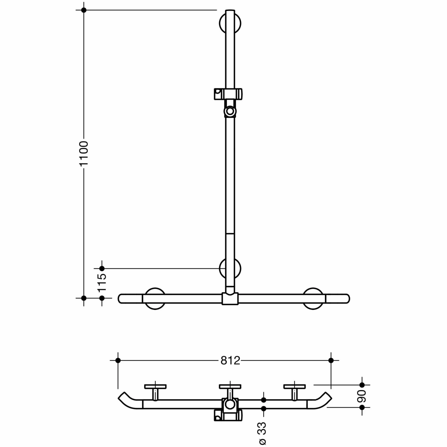 - senkrecht und waagerecht angeordnete, im rechten Winkel verbundene Stangen mit Brausehalter