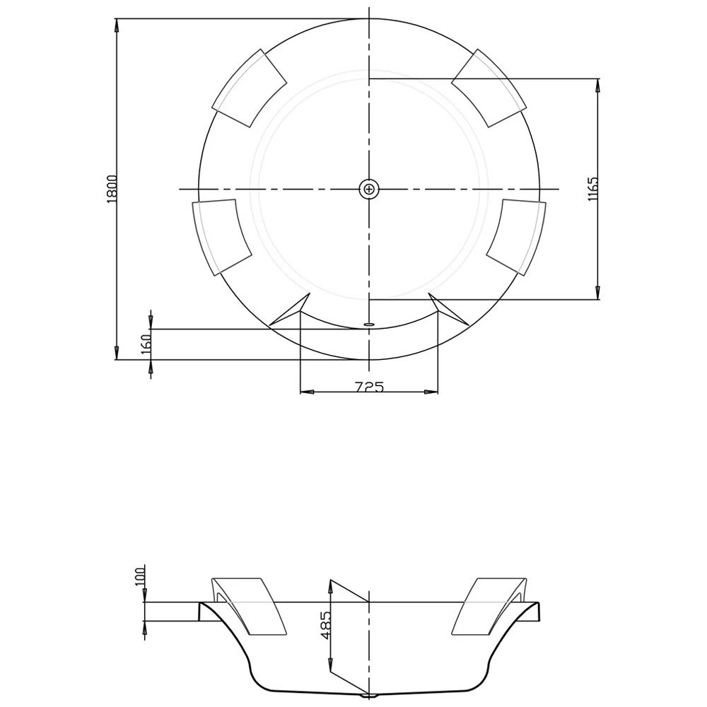 Hoesch Aviva Rund-Badewanne mit 4 Kopf-/Rückenstützen