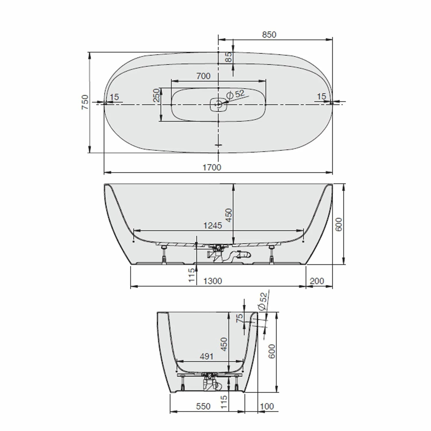 Hoesch iSensi Monolith Ovalwanne 170 x 75 cm freihstehend, mit Überlaufbefüllung