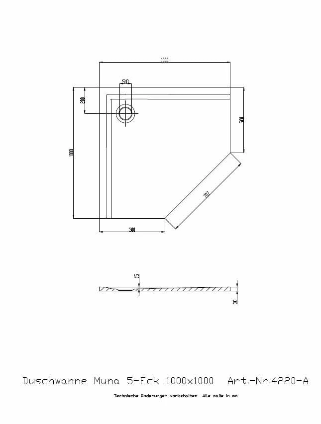 Hoesch Muna Fünfeckduschwanne 100 x 100 cm