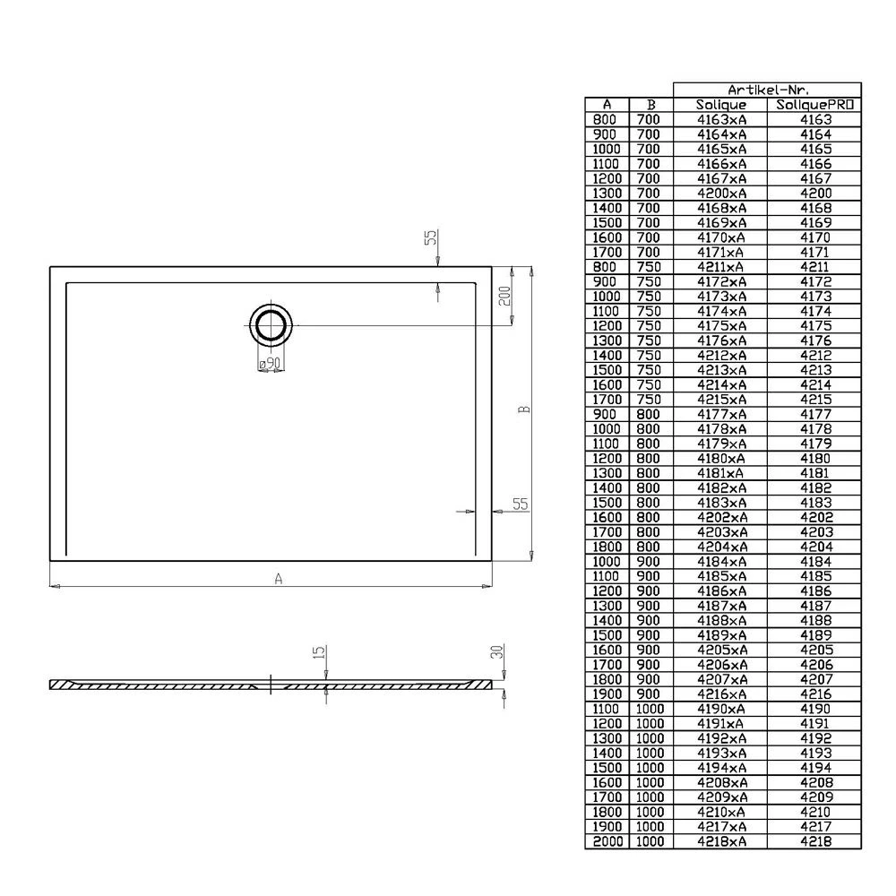 - Duschwannen aus Solique können direkt auf den dafür vorgesehenen, ebenen Boden (z.B. Estrich) aufgelegt werden – Füße sowie Gestelle sind nicht erforderlich