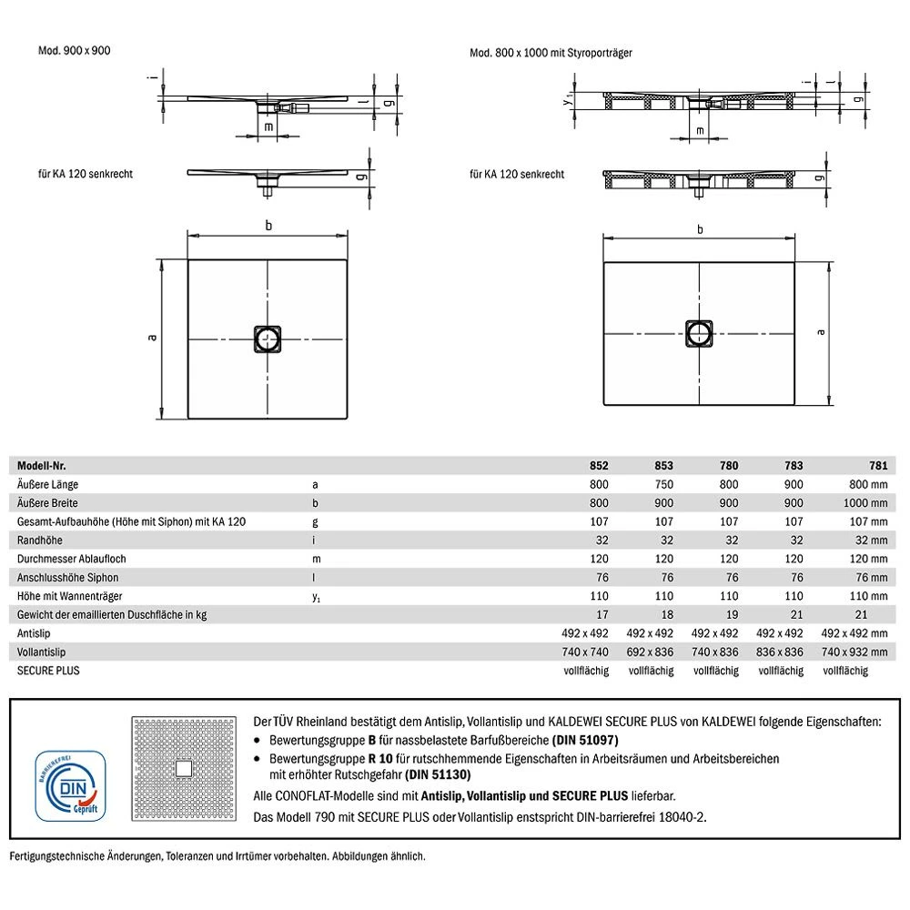 - Ablaufgarnitur KA 120 perfekt auf Duschfläche abgestimmt