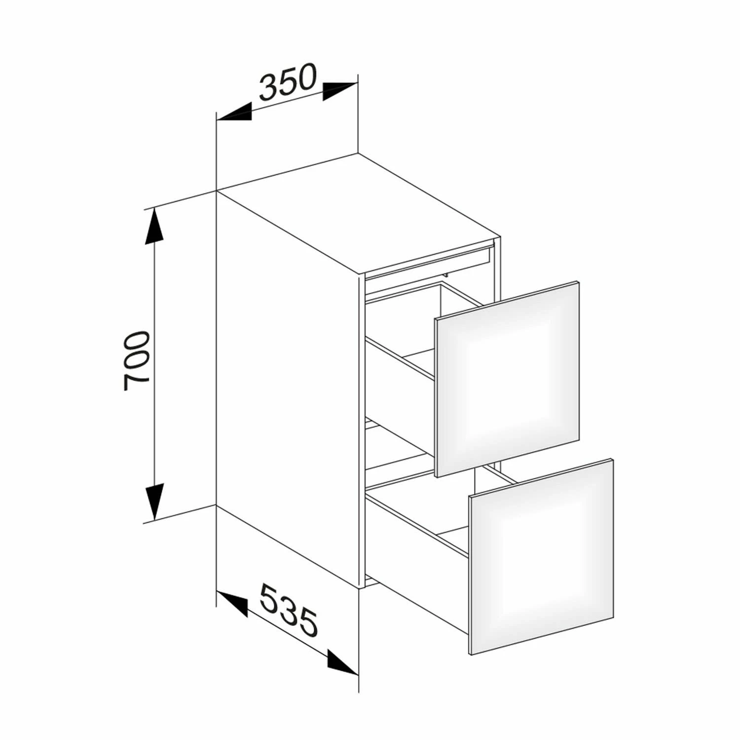 - Front und Korpus aus mitteldichter Holzfaserplatte (MDF)