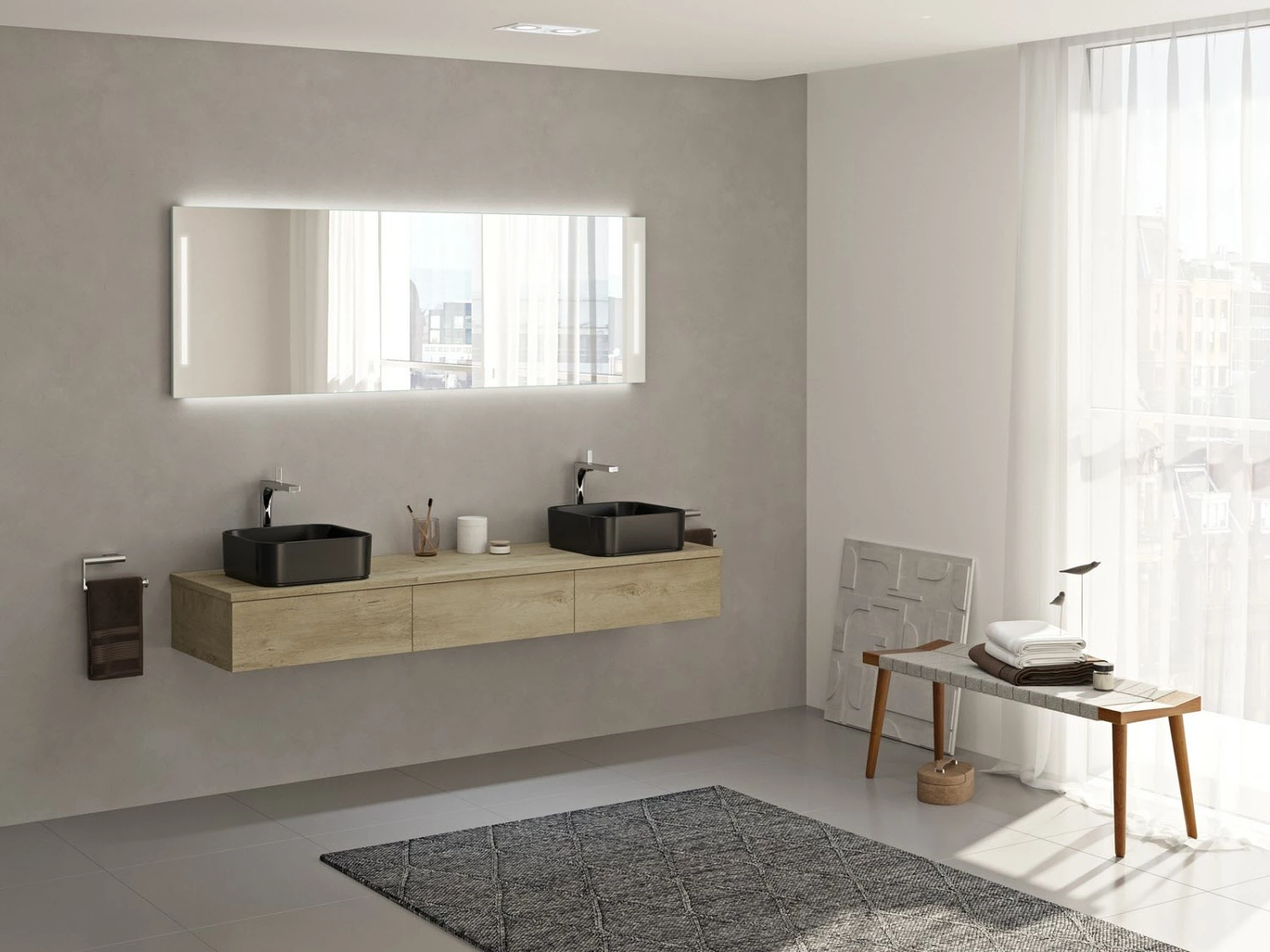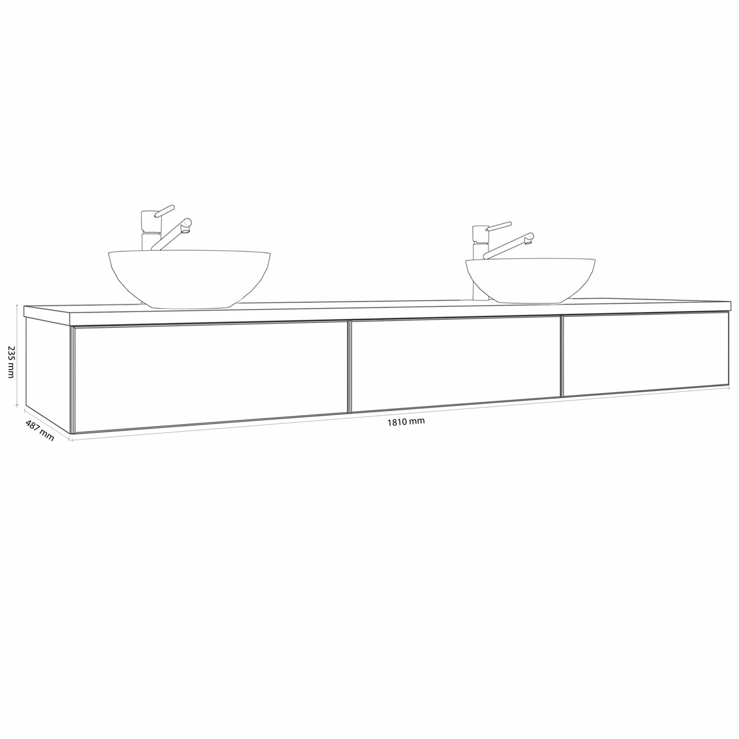 Kronenbach Cube Waschtischkonsole 181 cm für 2 Waschtische mit 3 Auszügen und TIP-ON