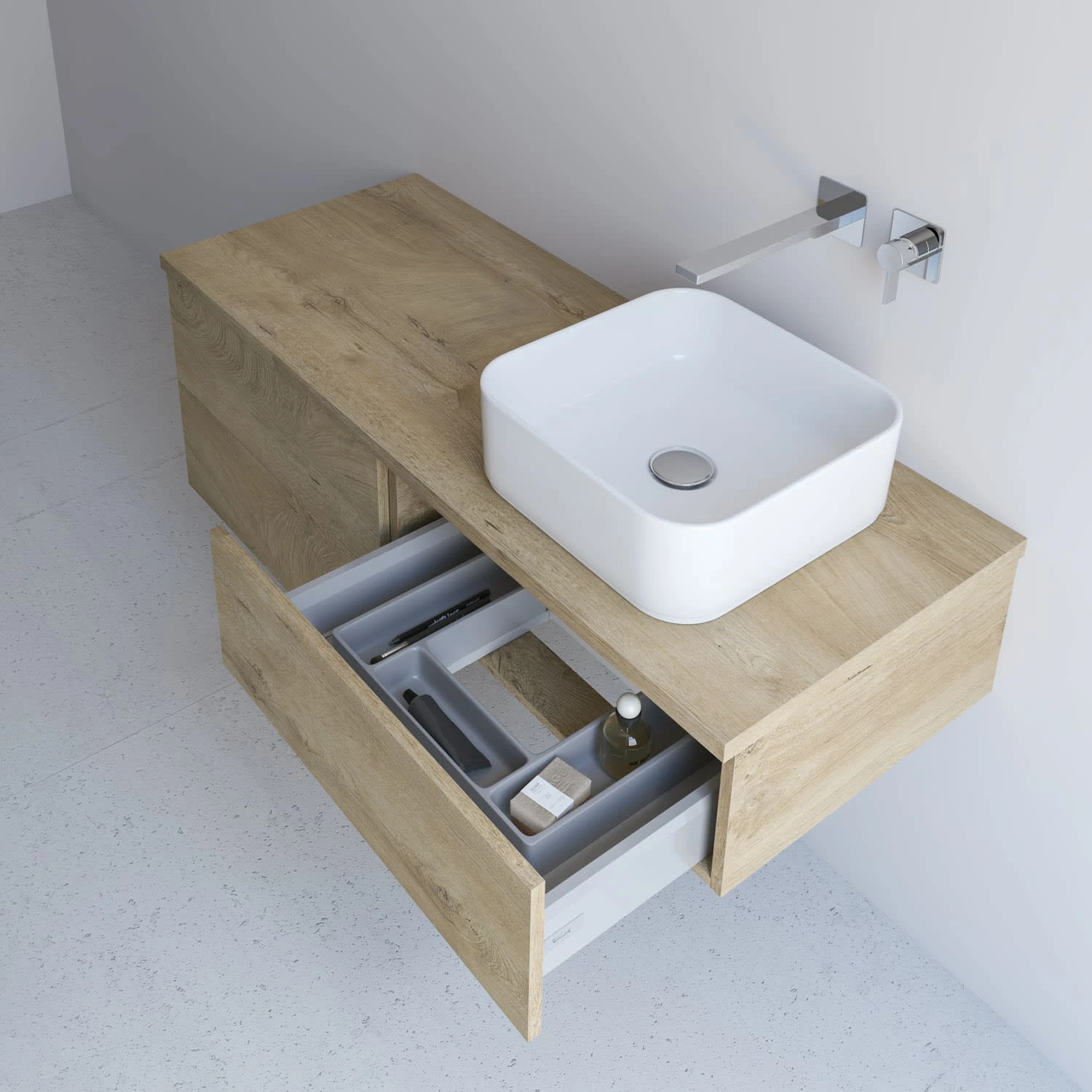 Waschtisch und Armatur sind nicht im Lieferumfang enthalten.
