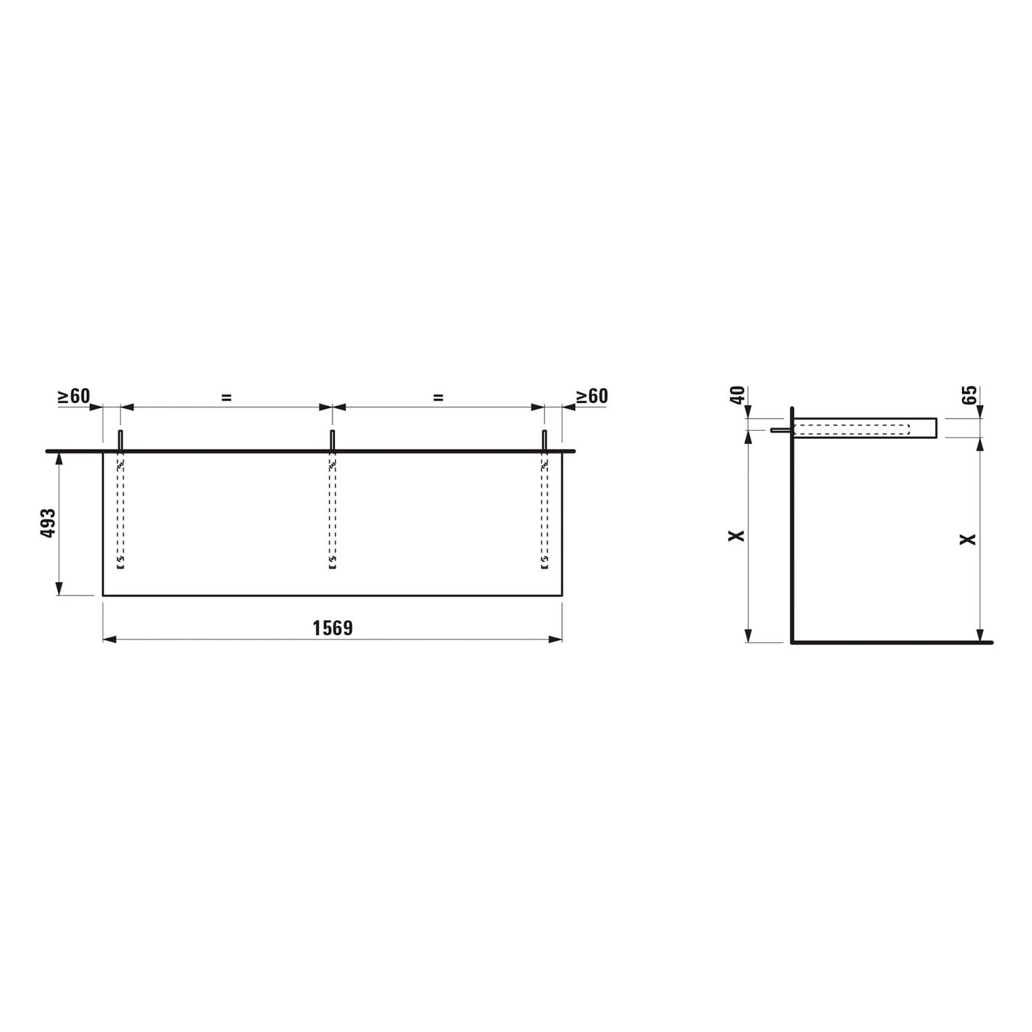 LAUFEN LANI Waschtischplatte 160 cm ohne Ausschnitt