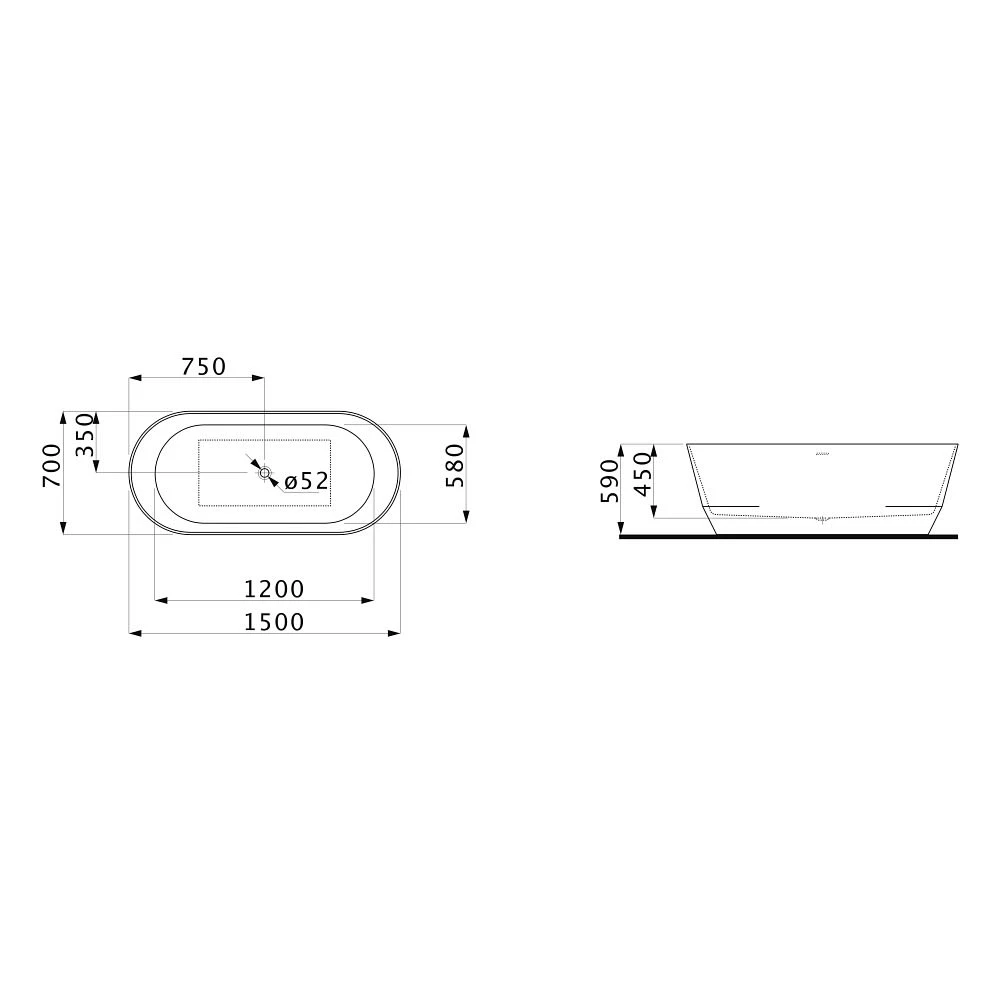 LAUFEN Pro freistehende Badewanne 150 x 70 cm aus Marbond