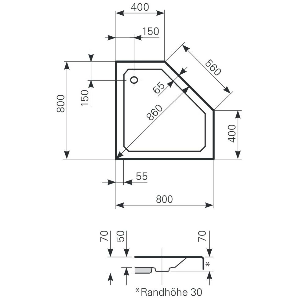 Mauersberger Fünfeck-Duschwanne Ceptor 80 x 80 flach