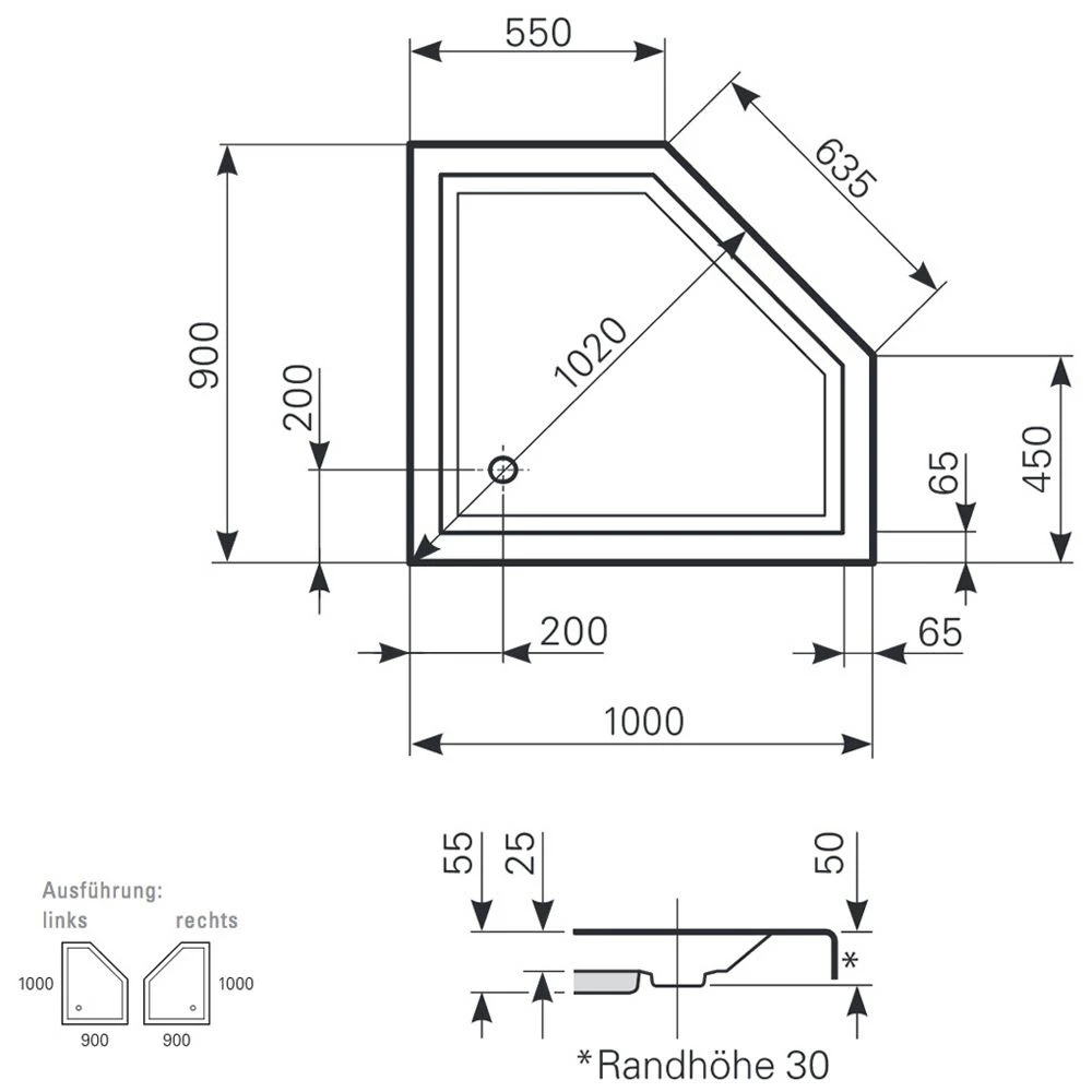 Mauersberger Fünfeck-Duschwanne Circi 100 x 90 superflach rechts
