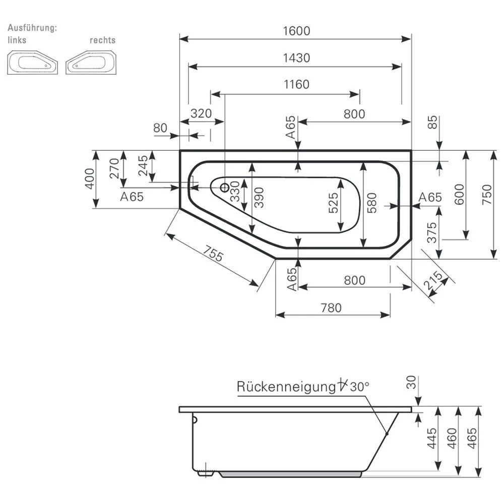 | Bauart | Raumsparbadewanne |