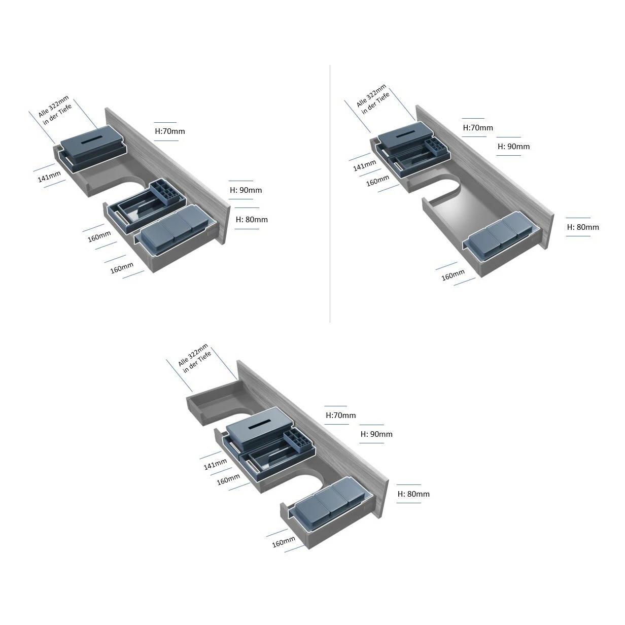 - beinhaltet drei Schubladeneinsätze